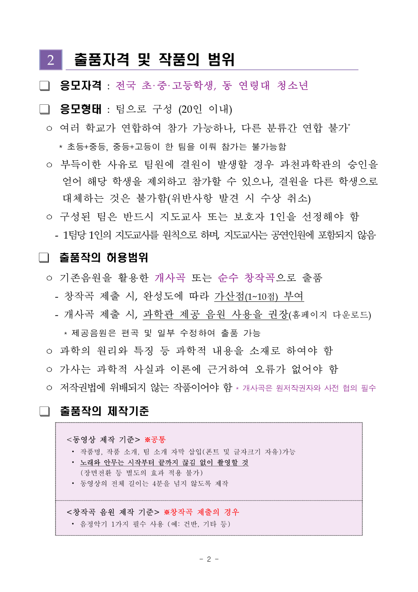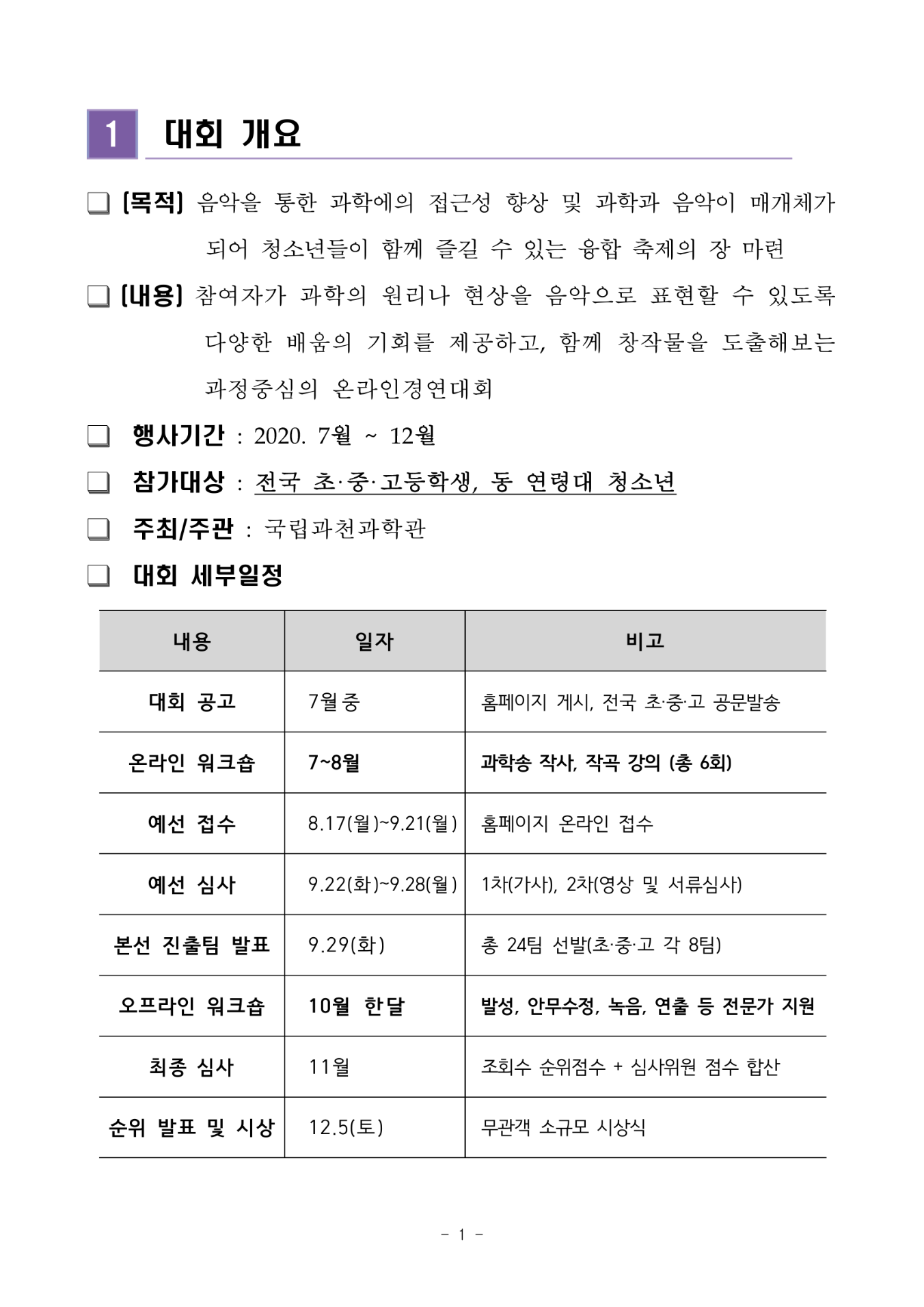 가. 대회명 : 2020 온라인 청소년 과학송 경연대회