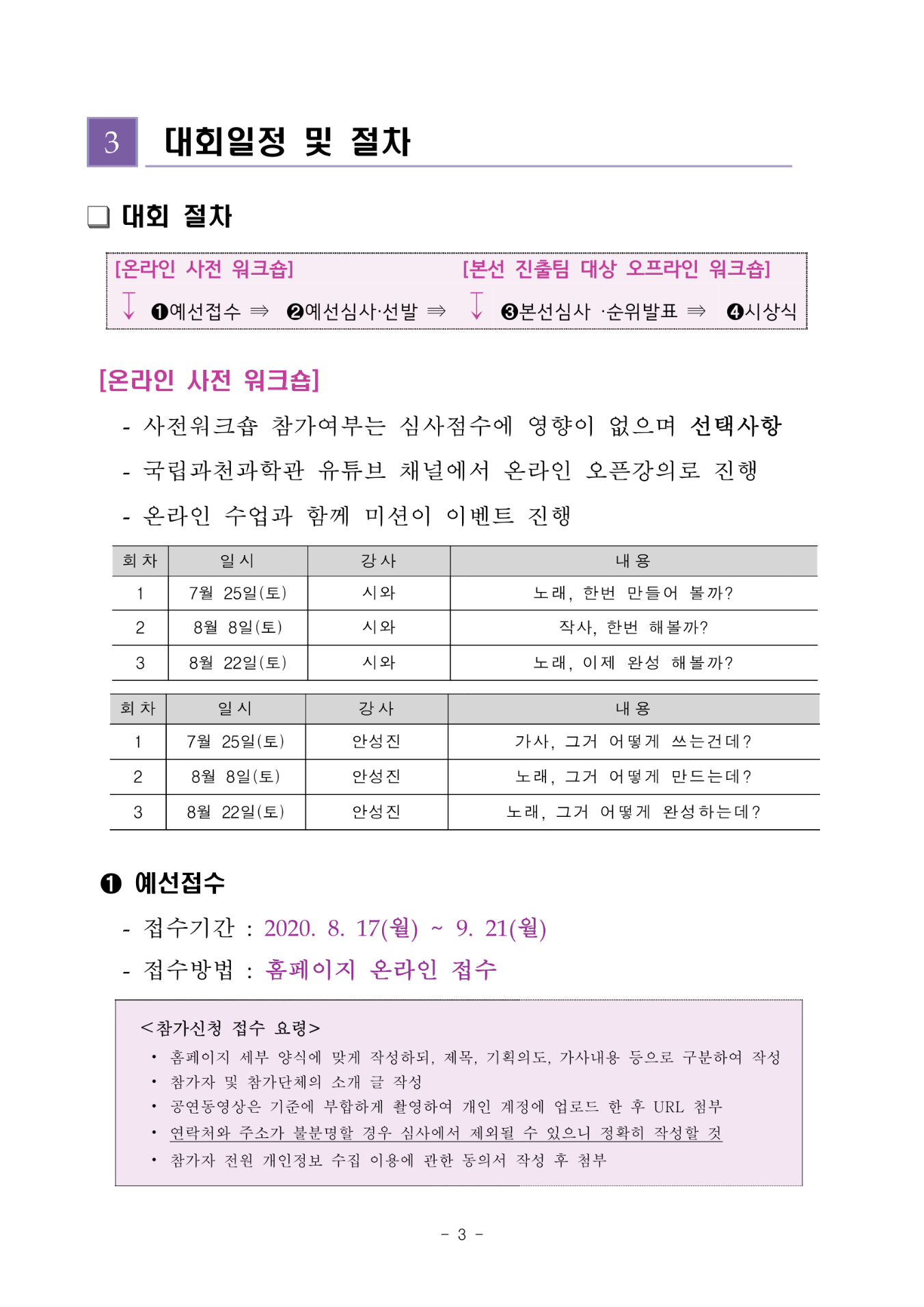 2)예선접수 : 8. 17(월) ~ 9. 21(월)