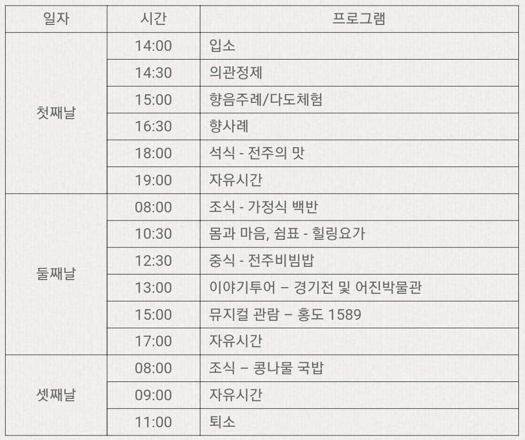 개인정보보호정책 | 연수원소개 | 로그인 [55045] 전북 전주시 완산구 향교길 119-6 (교동) 전주전통문화연수원 / TEL. 063-281-5271~4 / FAX. 063-288-9247 Copyright 전주전통문화연수원. All rights reserved.