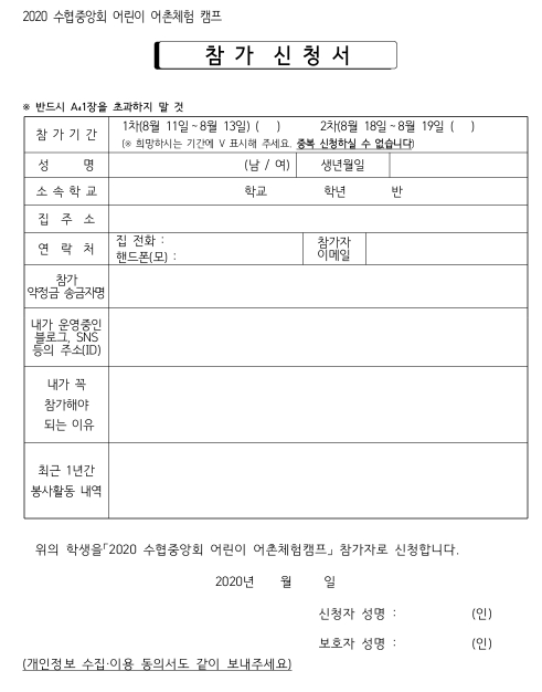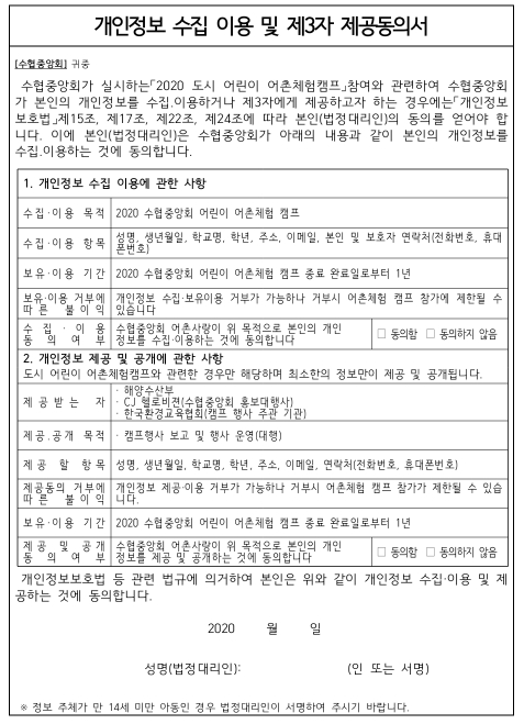 # 2020년 어린이 어촌체험캠프 참가 안내