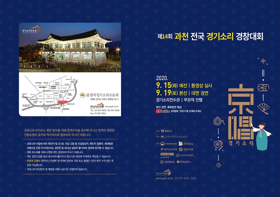 * 참가비 계좌: 농협 351-1040-9425-83 예금주 - 한국경기소리보존회