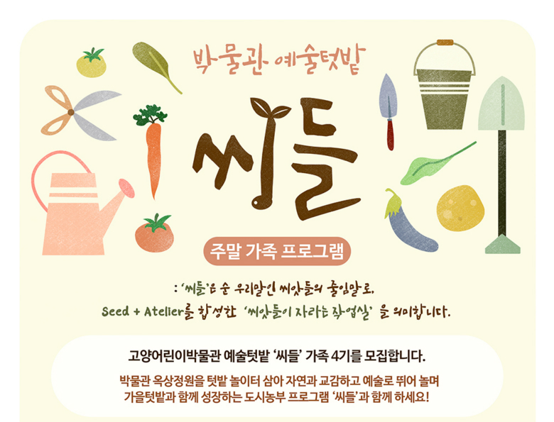 박물관 옥상정원을 텃밭 놀이터 삼아 자연과 교감하고 예술로 뛰어 놀며 가을텃밭과 함께 성장하는 도시농부 프로그램 '씨들'과 함께 하세요