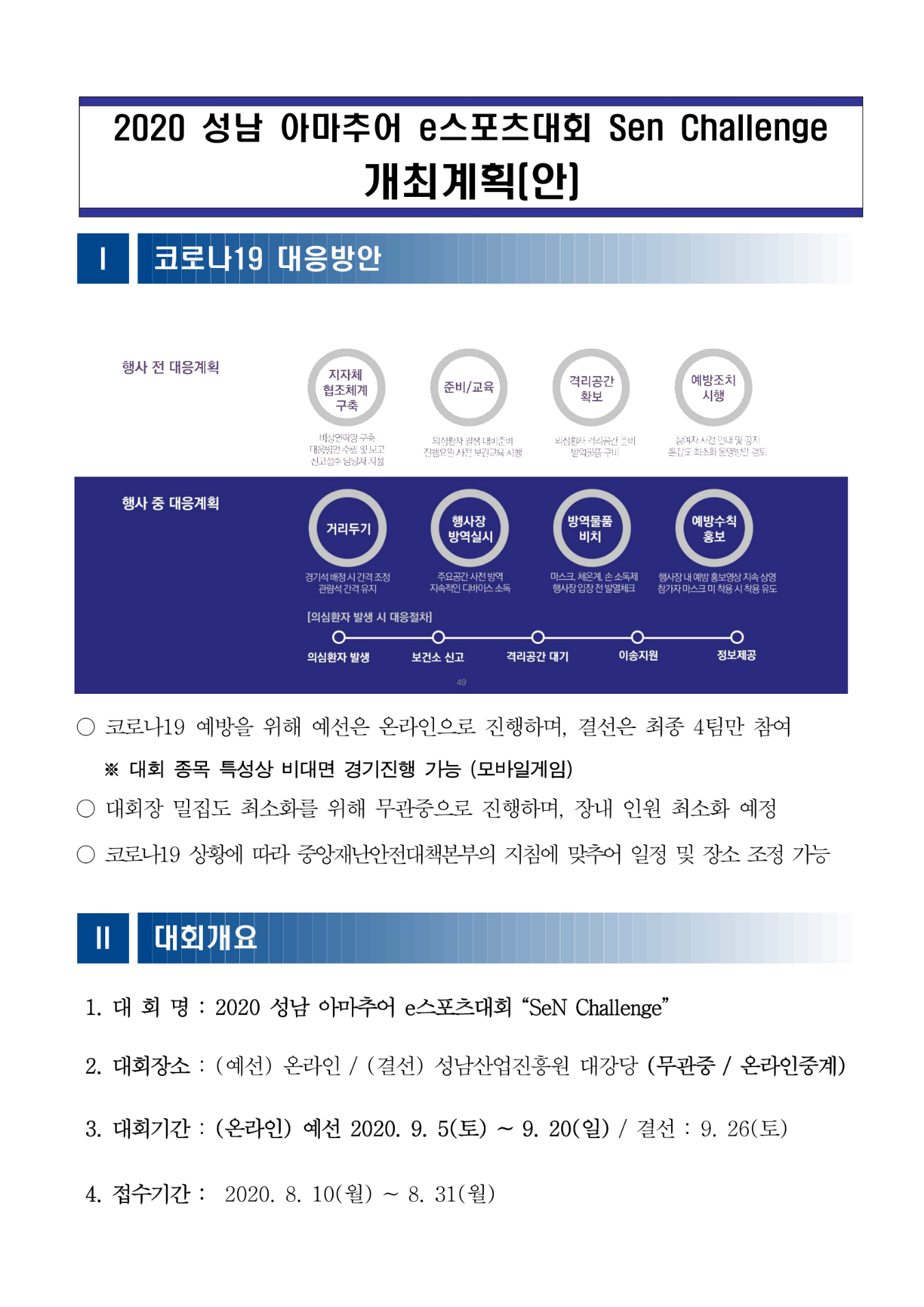 1) 대회명 : 2020 성남 아마추어 e스포츠대회"SeN Challenge"