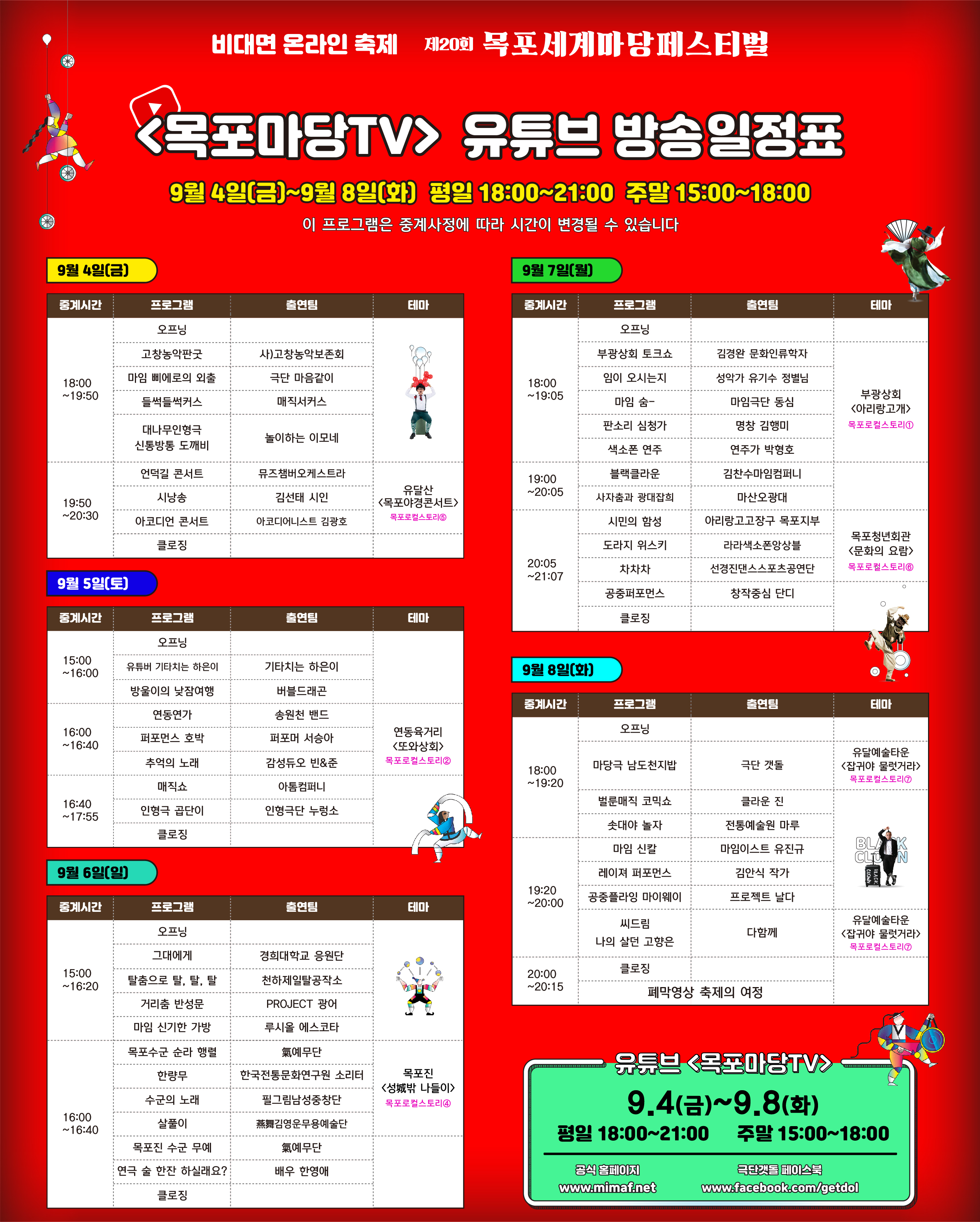 프로그램 : 개막 판열음, 목포 로컬스토리, 축제 20년 맞이 전시, 축제포럼, 기념대전 20