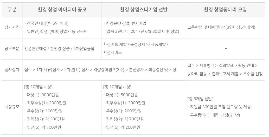 문 의 : 자세한 내용은 홈페이지 참조(환경창업대전 운영사무국(02-6395-3121)
