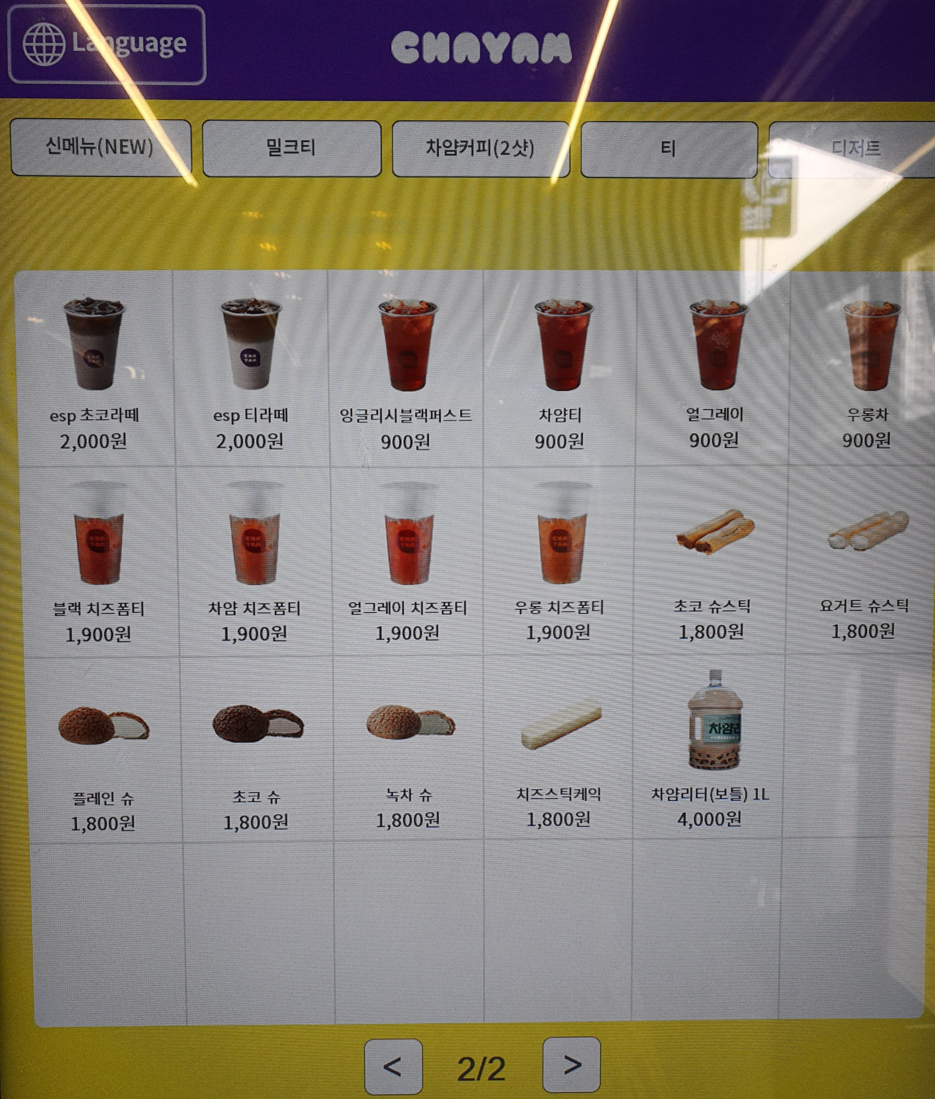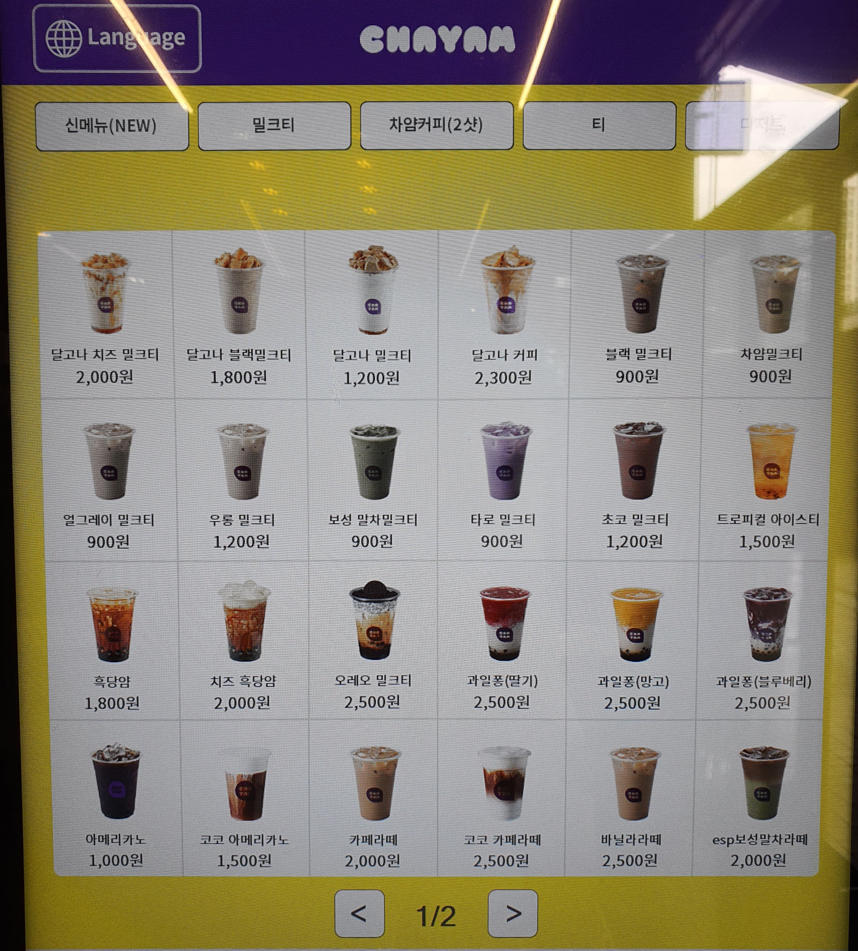 900원 메뉴 - 차얌밀크티, 얼그레이 밀크티, 블랙밀크티, 보성말차밀크티, 타로밀크티, 잉글리시블랙퍼스트, 차얌티, 얼그레이, 우롱차