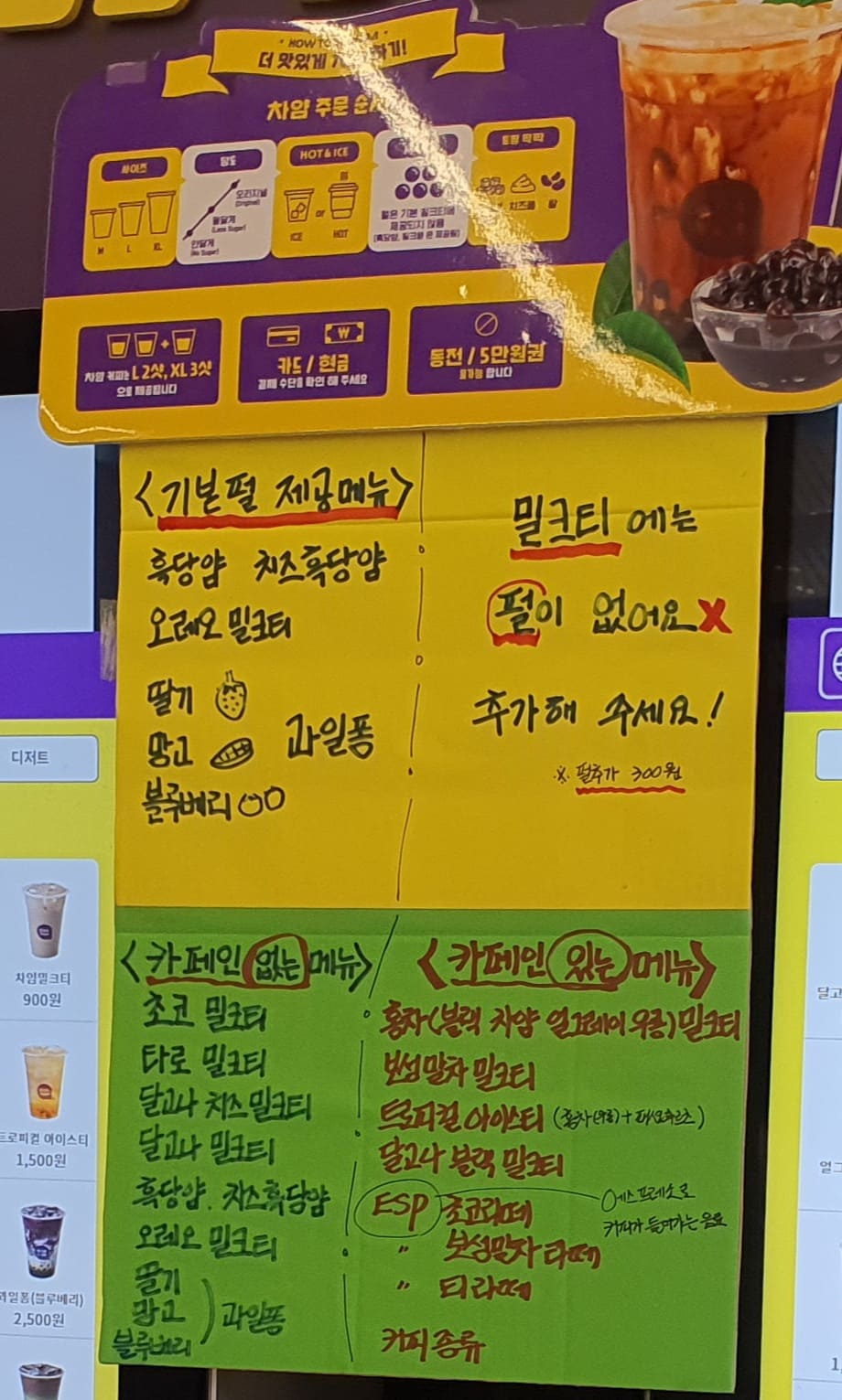 대신 밀크티에는 펄이 없으니 펄추가 300원, 사이즈 선택에 따라 가격이 올라가는건 당연한거구요~^^