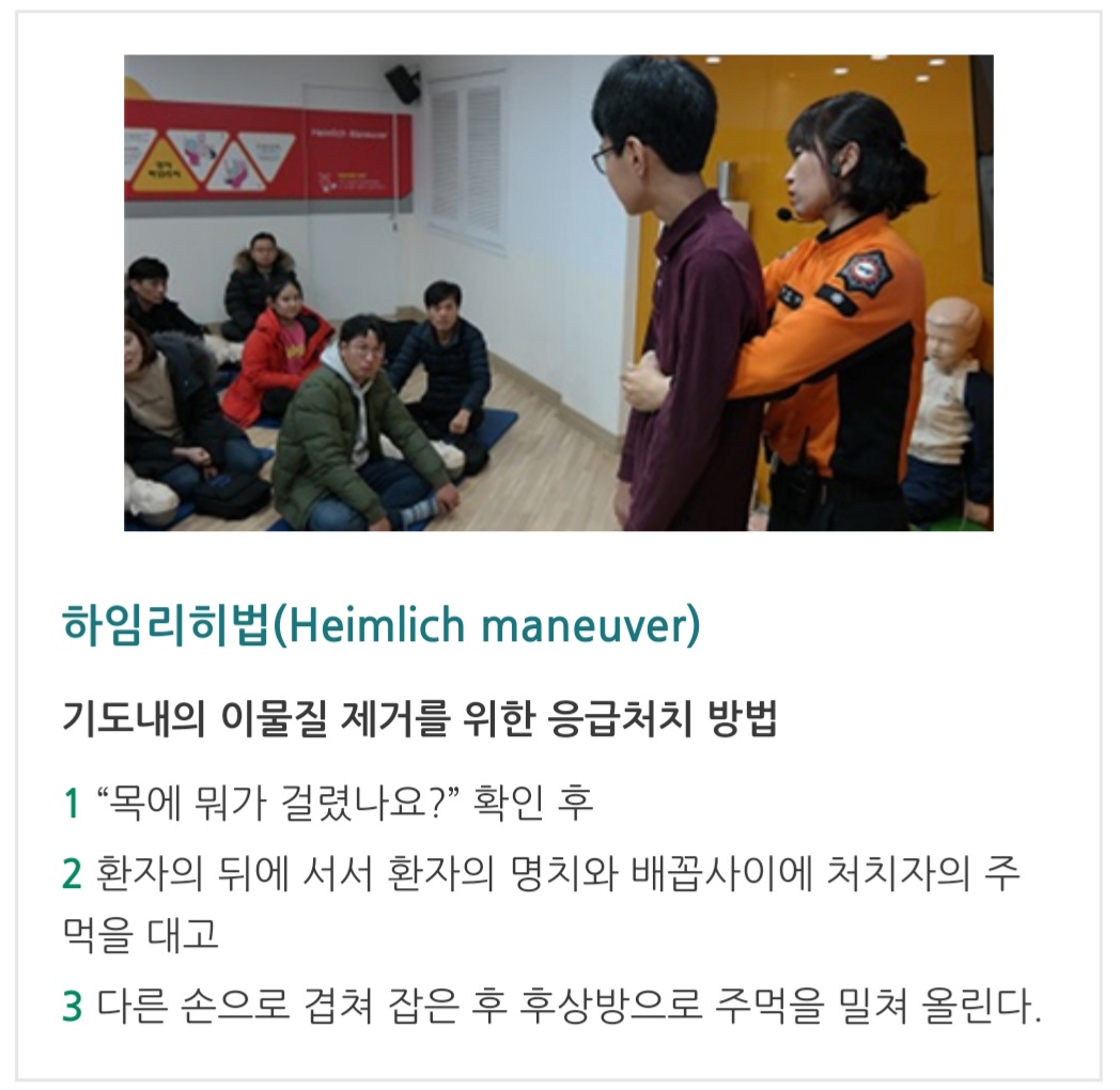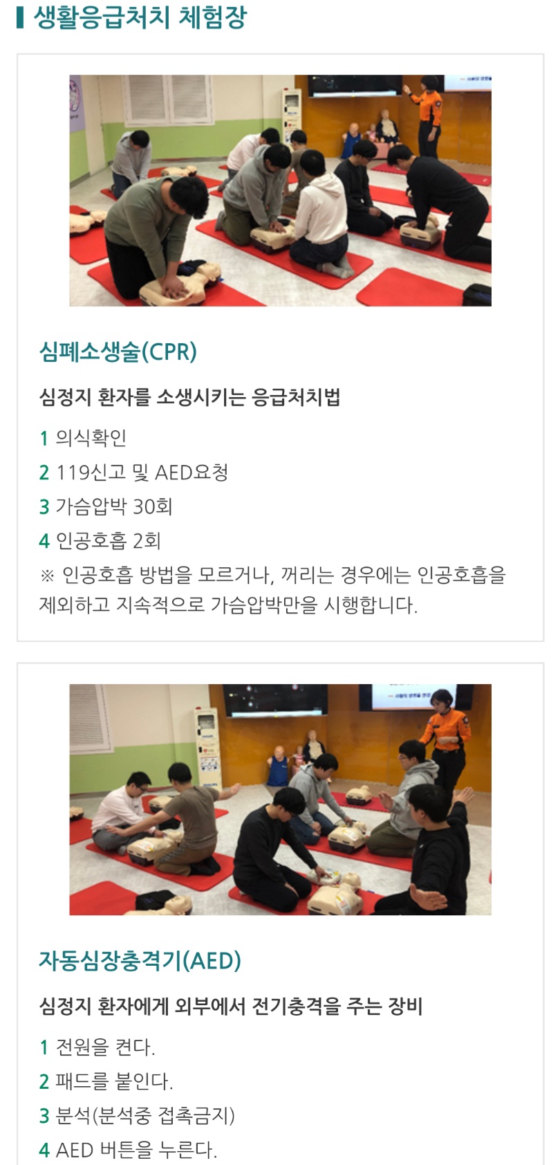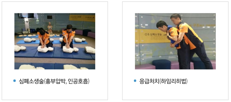 응급처치체험관 : 우리 생활에 필요한 응급처치 및 심폐소생술을 배울 수 있습니다.