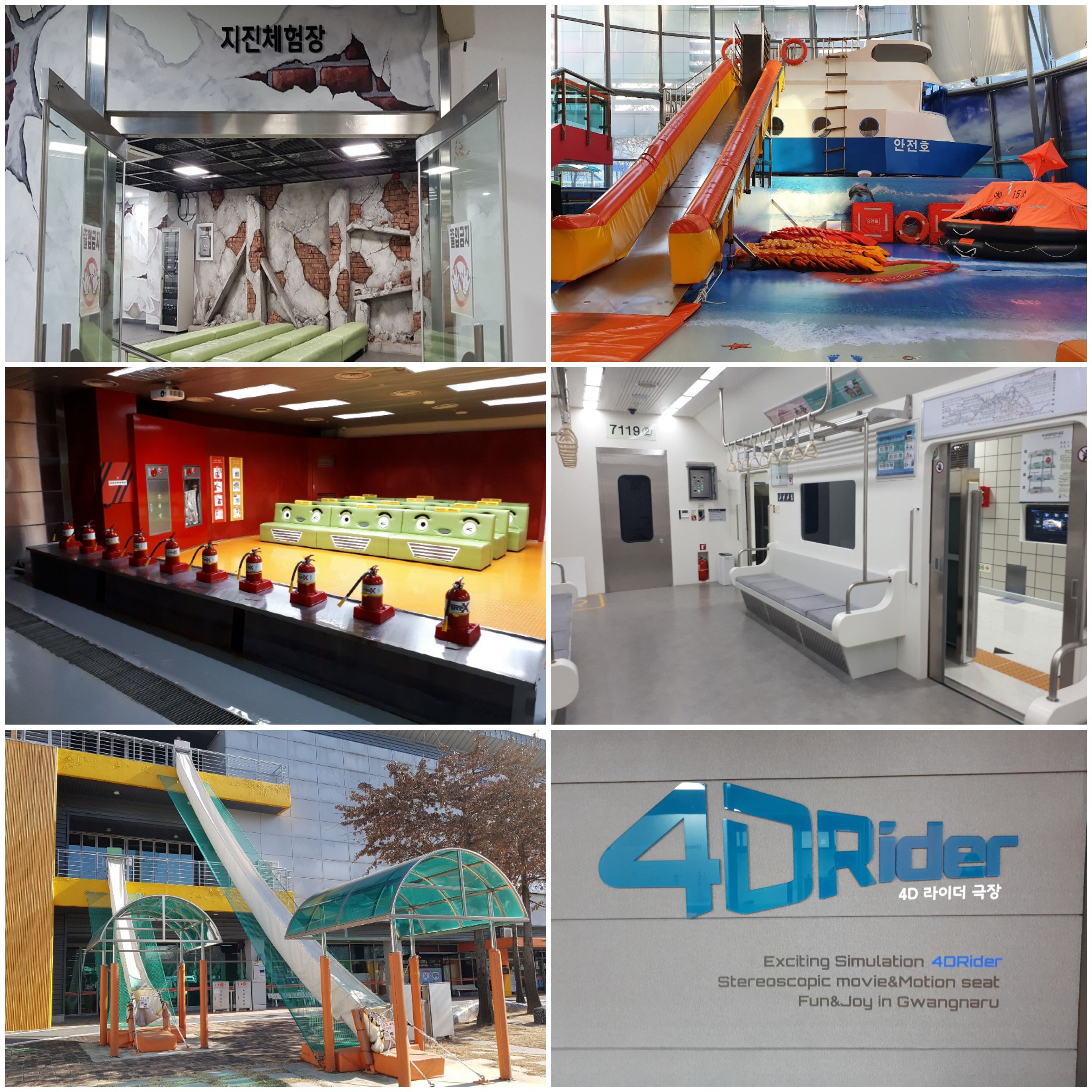 광나루 안전 체험관 각종재난 상황을 가상으로 일반시민들이 직접 체험하면서 안전교육을 받을 수 있는 국내 최초의 재난 체험관