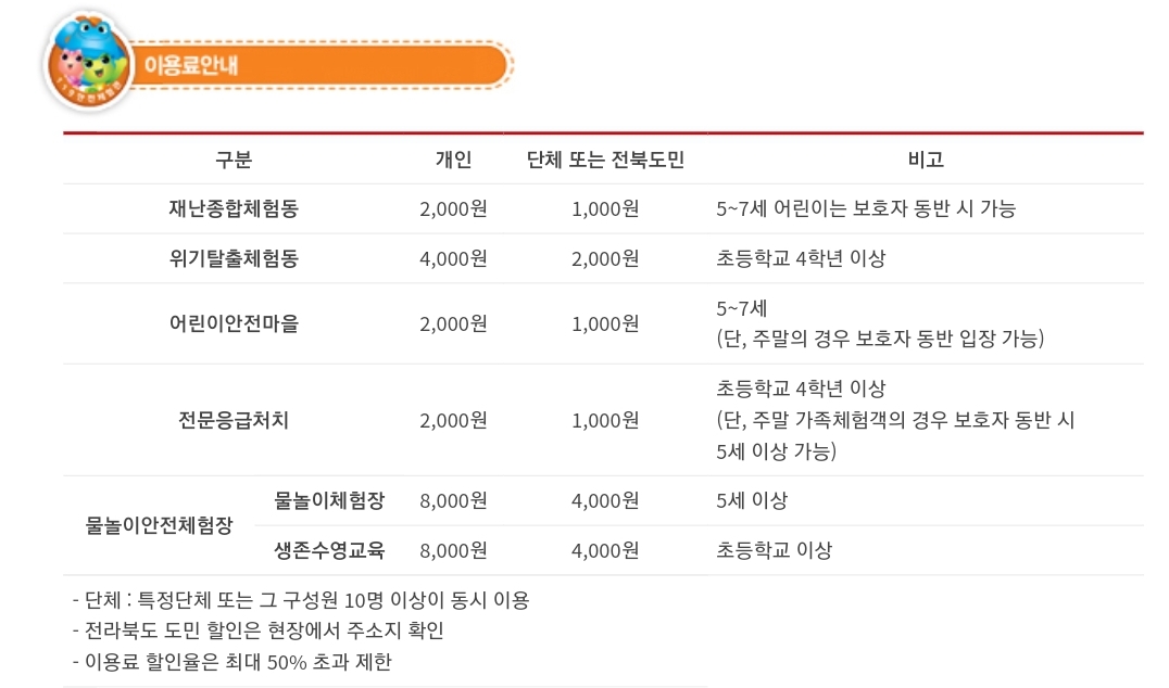 - 이용제한 : 48개월미만 및 신장100㎝미만은 안전체험관 이용이 불가합니다.