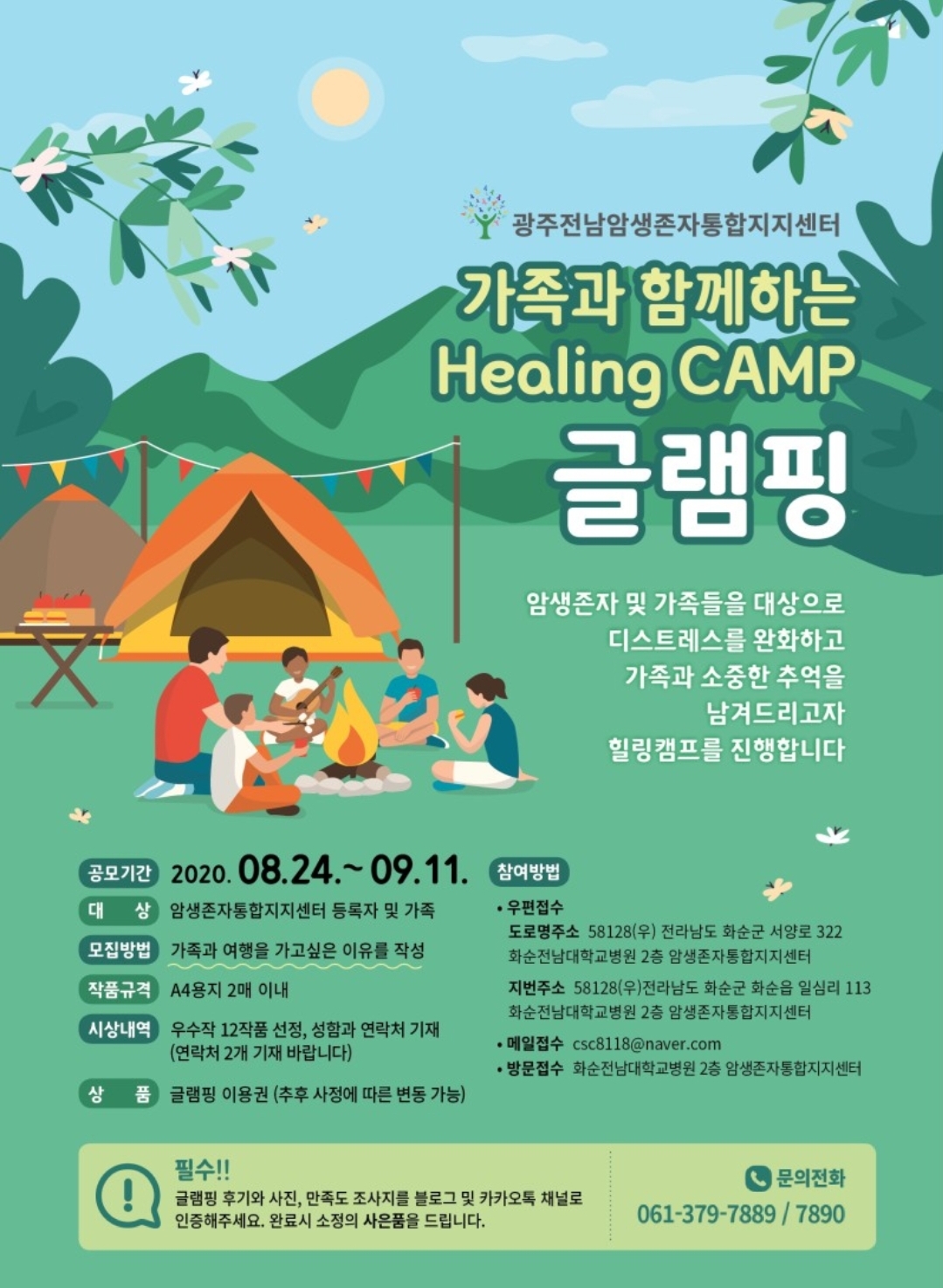 A4용지 2개 정도의 분량으로 '내가 가족과 여행을 가고 싶은 이유와 사연'을 적어서 동의서와 함께 광주전남 암 생존자 통합지지센터로 보내시면 됩니다.