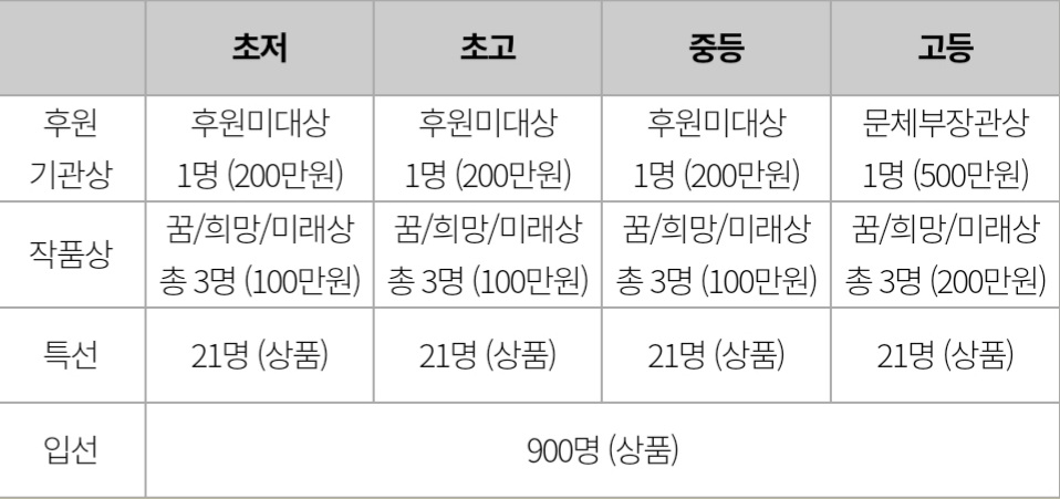 - 심사결과에 따라 적합한 입상작이 없는 경우에는 선정하지 않을 수 있음