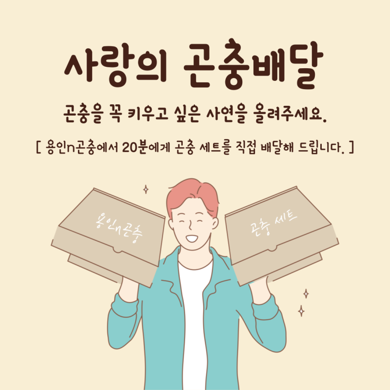 20명을 선정하여 용인n곤충에서 곤충 세트를 직접 배달 해드립니다.