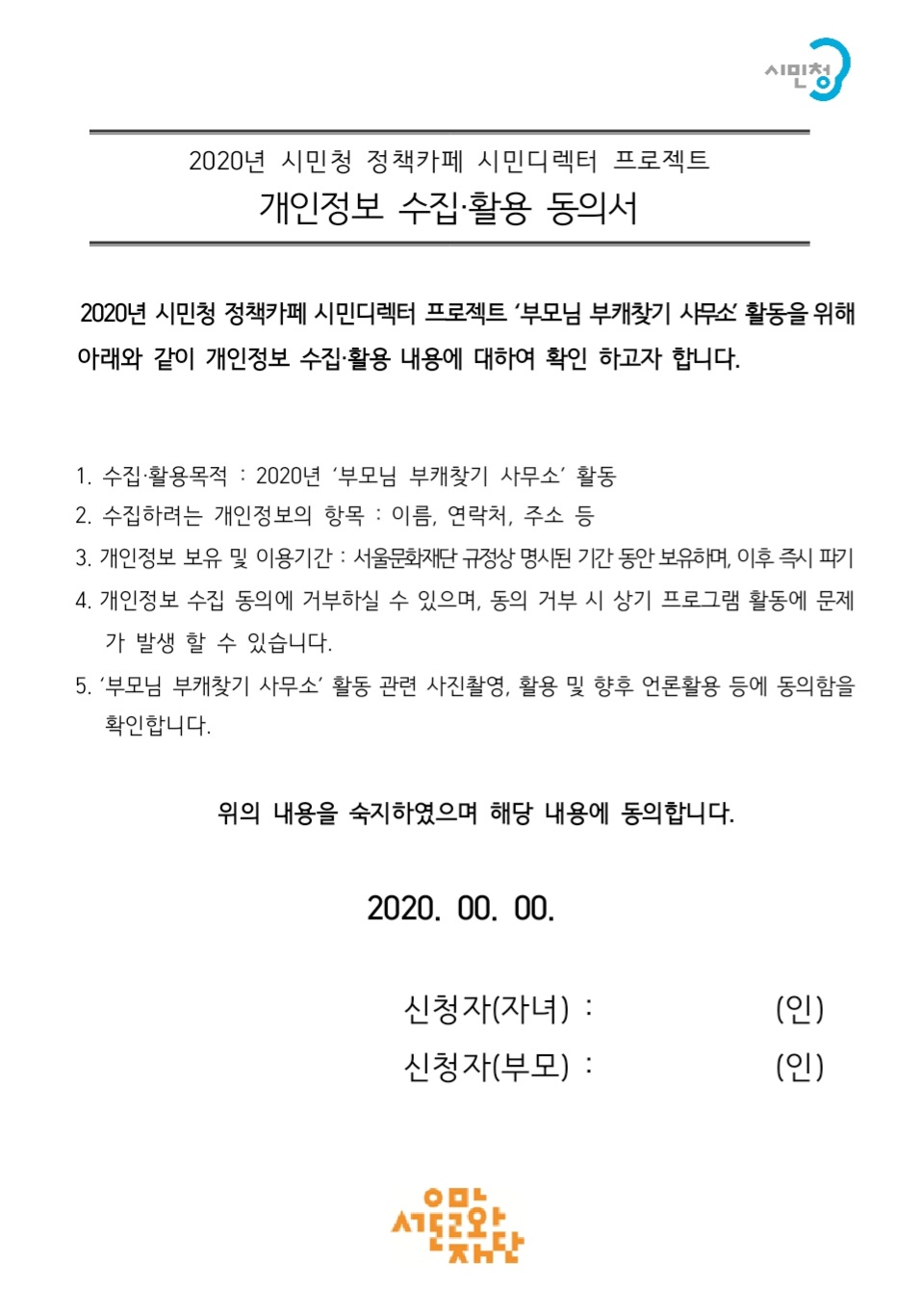 부모님의 잃어버렸던, 또는 숨겨 왔던 진짜 모습을 찾고 싶으신 자녀분들은 ‘부모님 부캐찾기 사무소’에 지원 부탁드립니다.