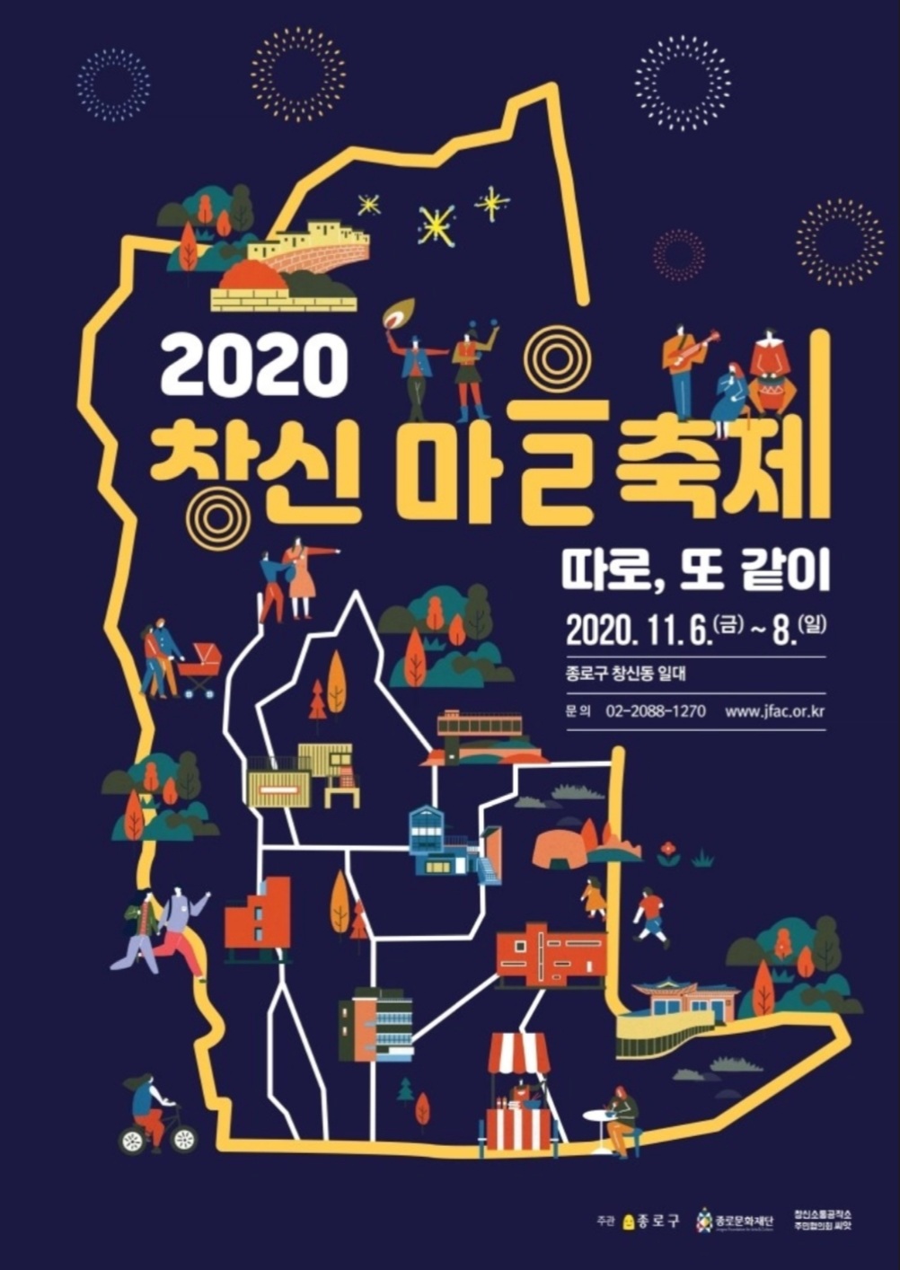 2020 창신마을축제 "따로, 또 같이" 축제가 <창신동 마을전체> 에서 열린다고 하니 우리 이웃들이 직접 준비한 전시, 공연, 패션쇼, 마켓, 이벤트 등 다양한 볼거리를 즐겨보세요!