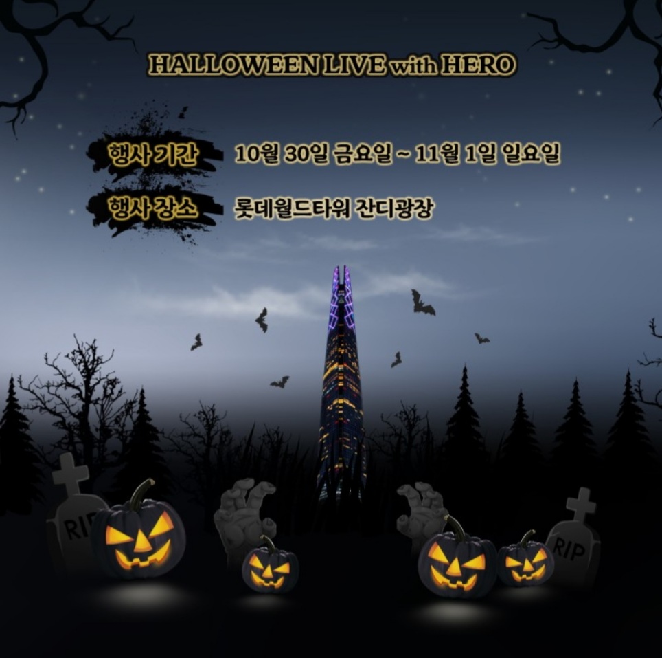 LIVE with HERO는 롯데월드타워와 마블이 함께하는 행사로, 10월 30일 금요일 ~11월 1일 일요일까지 롯데월드타워 잔디광장에서 진행되며, 행사 당일 롯데월드타워를 방문하시는 누구나 본 행사를 즐기실 수 있다고 합니다.