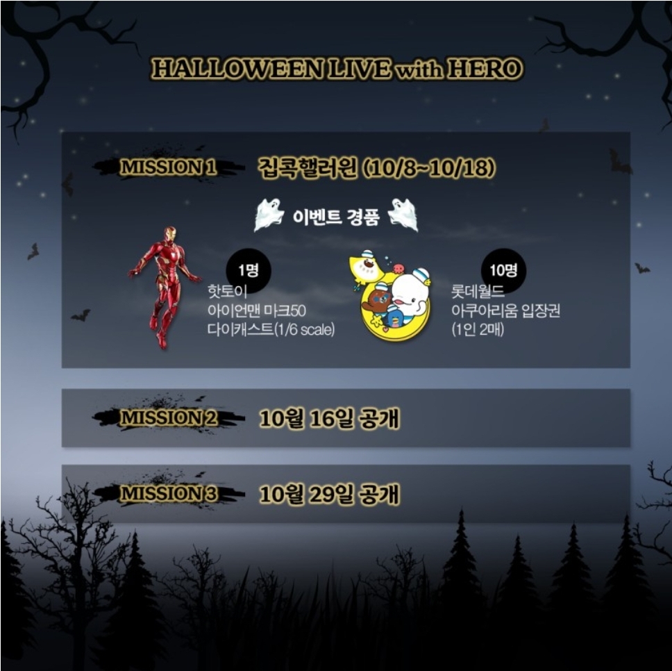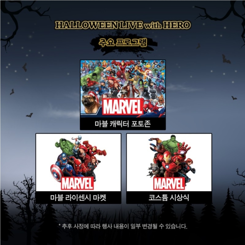 롯데월드타워에서 열리는 할로윈 행사 LIVE with HERO가 마블과 함께 하는 행사이니 할로윈을 즐기시는 분들 뿐만 아니라 마블 팬분들도 참가하시면 좋을 것 같아요!^^