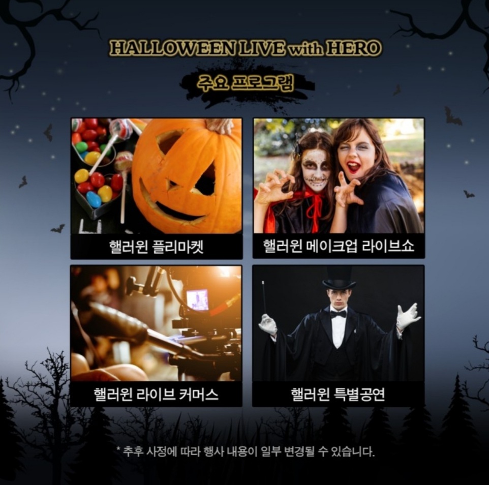 또, 당일 행사에 코스튬을 하고 오신 참가자를 대상으로 한 코스튬 시상식, 코스메틱 브랜드 '토니모리'와 함께하는 할로윈 메이크업 라이브 쇼, 다양한제품들을 구매할 수 있는 할로윈 라이브 커머스, 마술 공연을 비롯한 할로윈 특별 공연 등 다양한 무대 행사도 준비되어 있습니다.