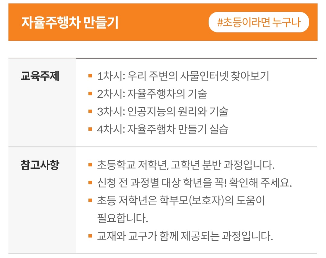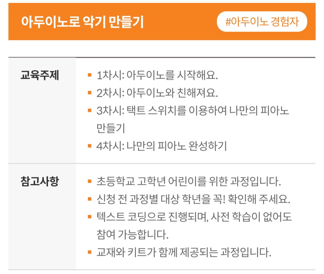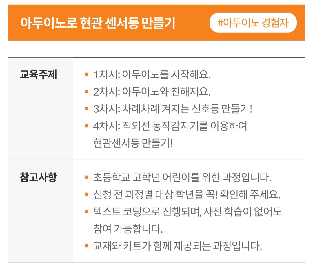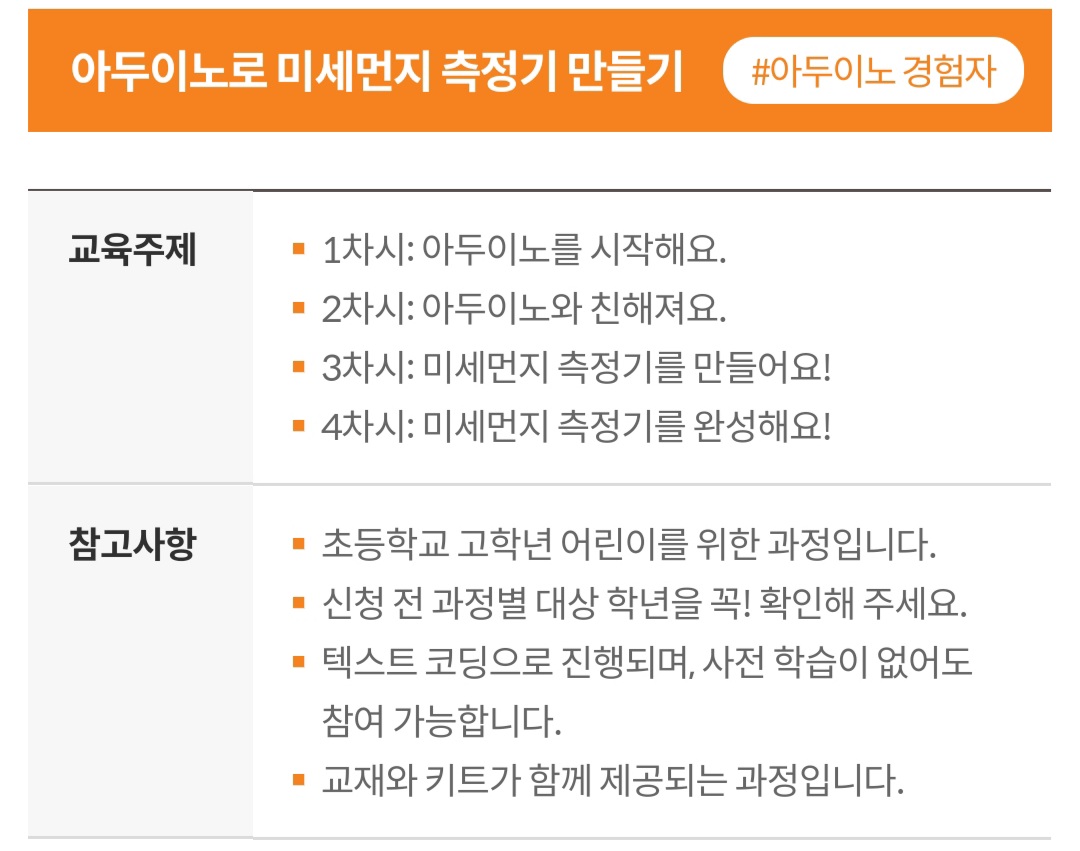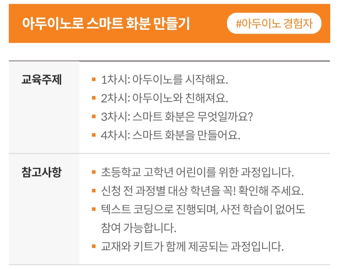 본 과정은 코딩의 기본적인 지식이 있거나 아두이노를 활용한 경험이 있는 아동에게 추천합니다.