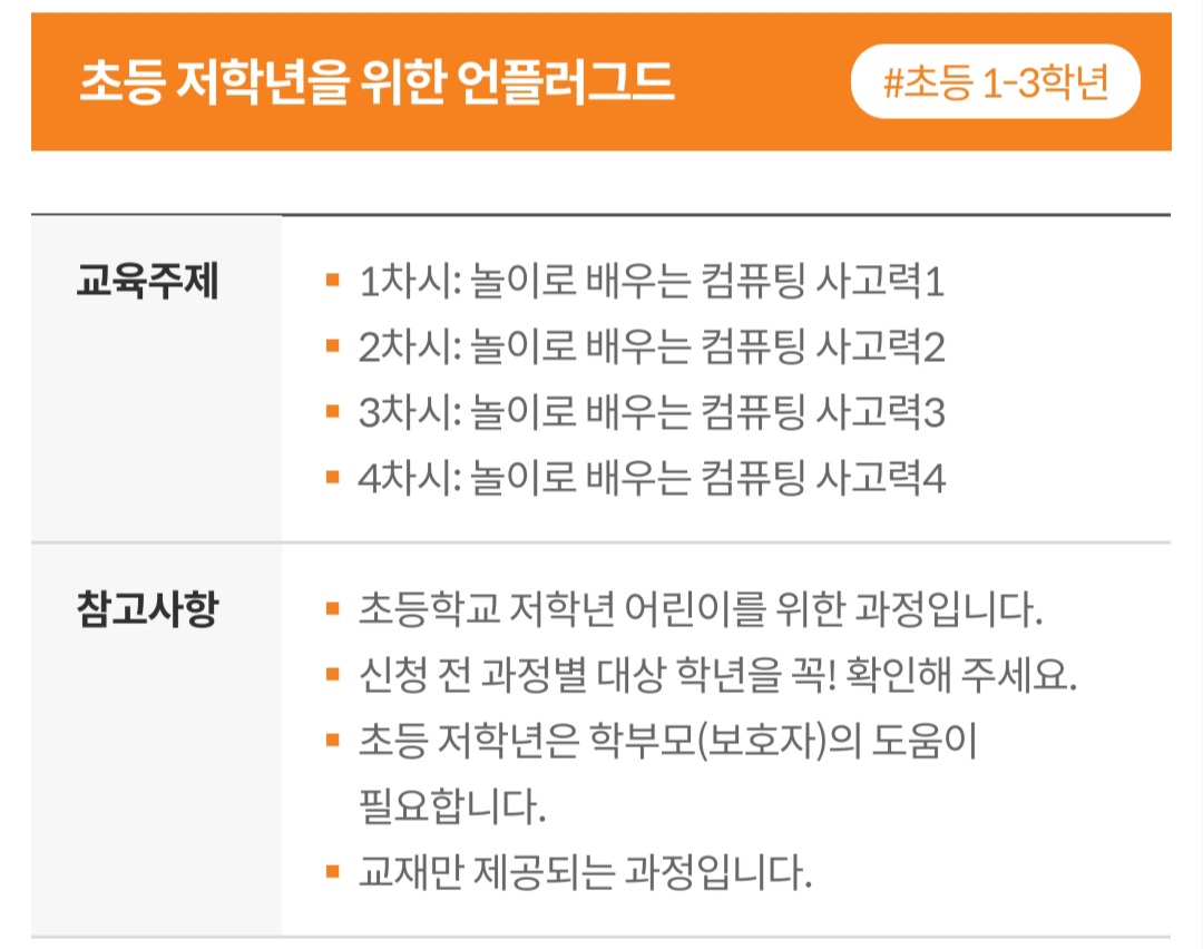 각 대상에 맞는 수준별 놀이와 체험으로 소프트웨어의 기초 개념을 익히고, 컴퓨팅 사고력을 향상시켜봅니다.