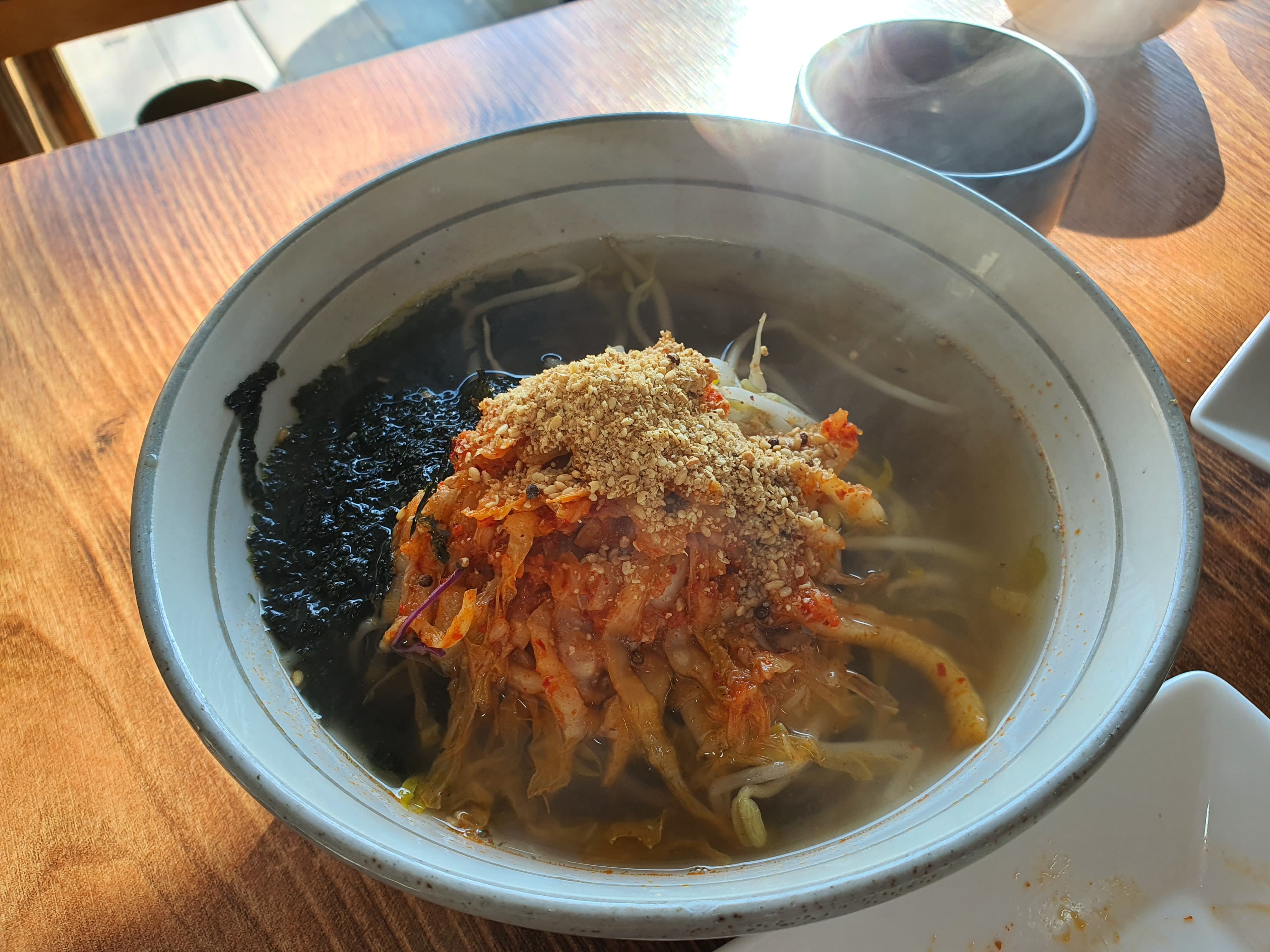 하지만 육수가 일반 잔치국수보다는 좀 더 묵직한 육수 느낌이고 콩나물과 김치고명, 김이 어우러진 도토리 스타일의 잔치국수랍니다.