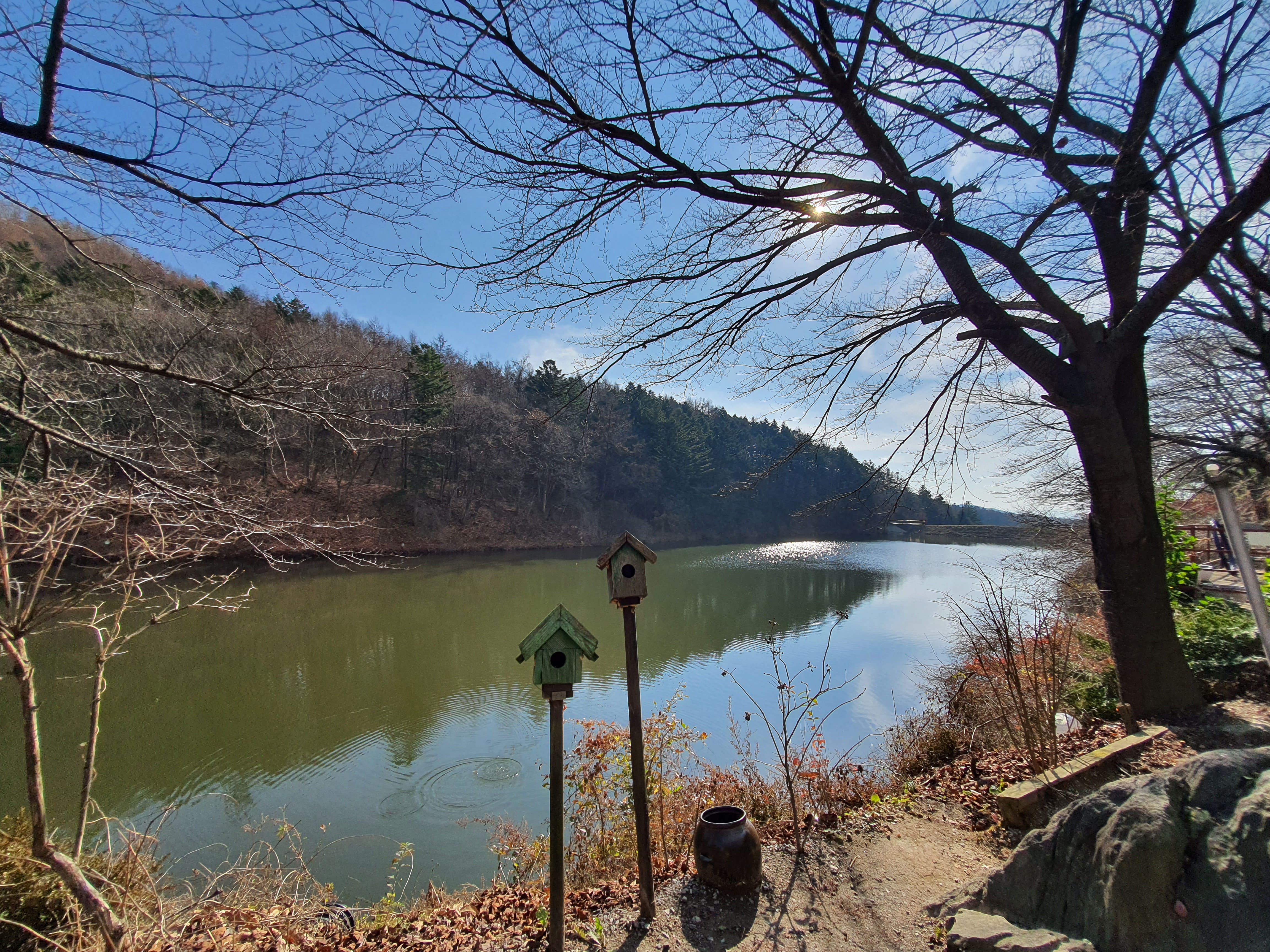 생각하고 찾아간건 일반적인 식당이였는데 갑.툭.튀 (갑자기 툭 튀어나온) 이국적인 디자인에, 이국적인 식당에서 팔고 있는 음식은 도토리가 메인이 되는 음식이고... 식당 앞의 뷰는 저수지 뷰랍니다... ㅋㅋㅋㅋㅋㅋ