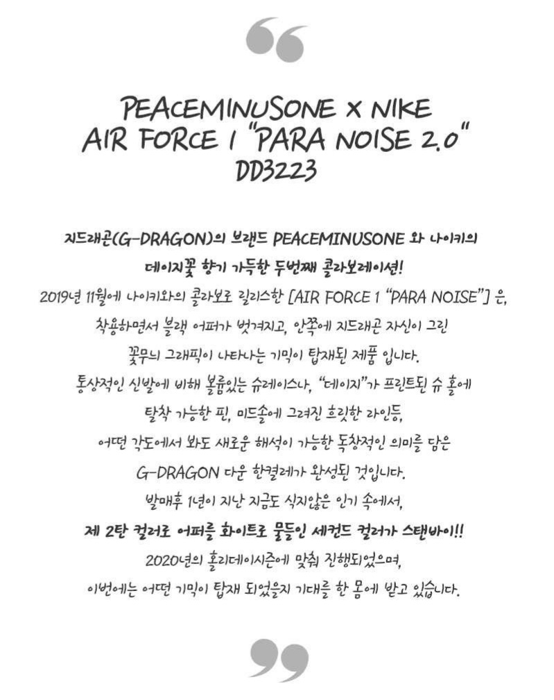 나이키가 아티스트 지드래곤과 협업한 ‘두 번째 에어포스원 파라노이즈’이라고 하네요.