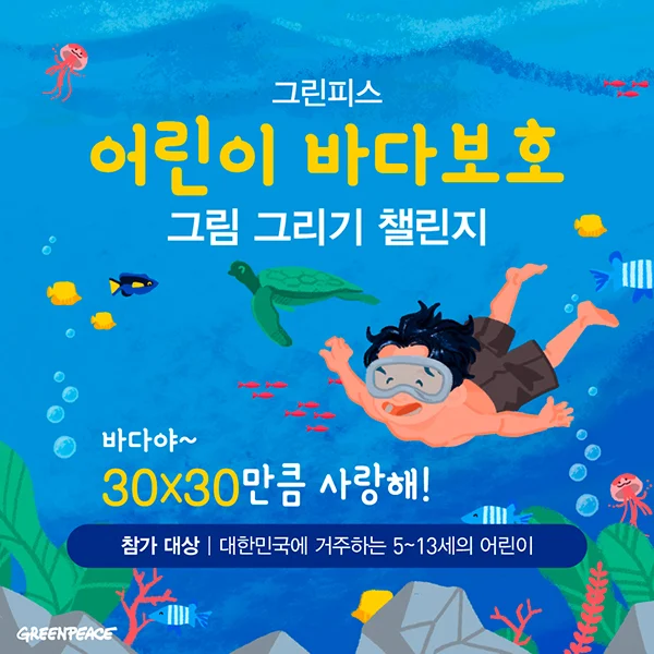 그린피스는 바다 보호를 위해 전 세계 다양한 국가에서 해양보호캠페인을 진행하고 있습니다. 2030년까지 전세계 바다의 30%가 해양보호구역으로 지정되어야 우리의 바다를 지킬 수 있습니다. 바