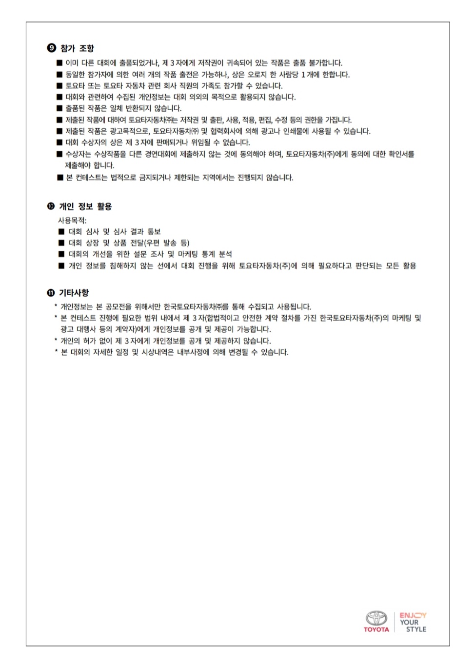 * 자세한 내용은 토요타 홈페이지 내 참가규정 안내문 참고