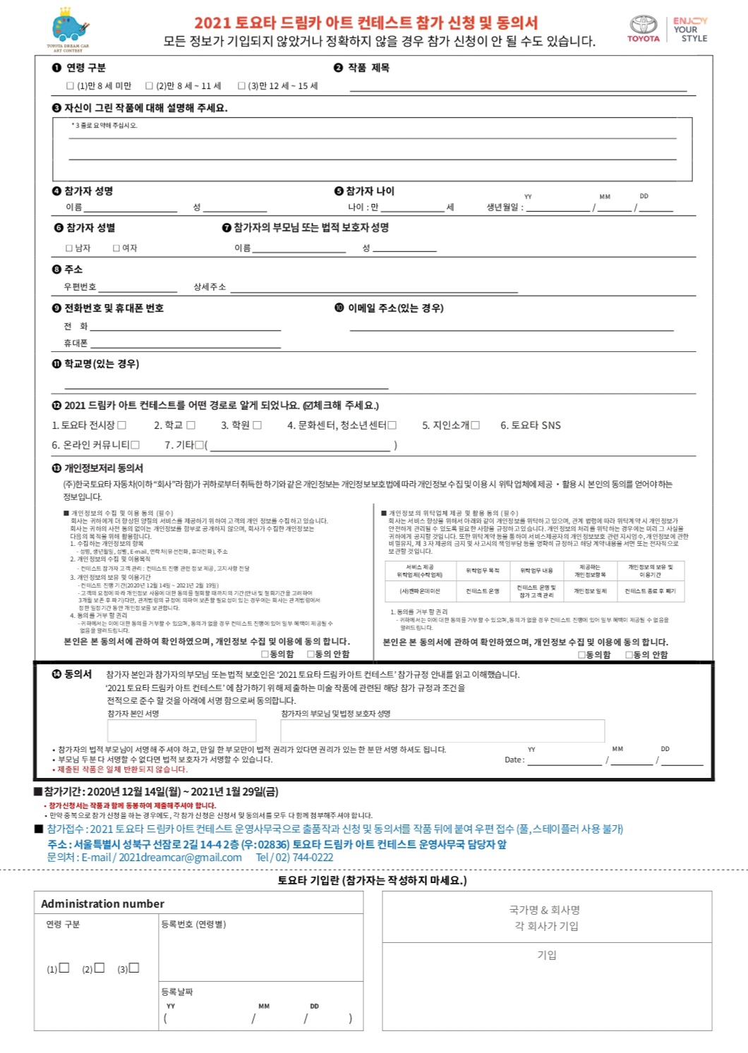 # 2021 토요타 드림카 아트 콘테스트(Dream Car Art Contest)