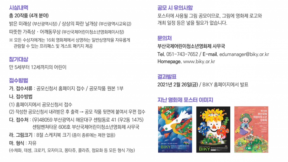 그리고 제16회 부산국제어린이청소년영화제는 2021.07.05(월)~2021.07.12(월)의 일정이 잡혀 있으니 추후에 포스팅 할게요 ^^