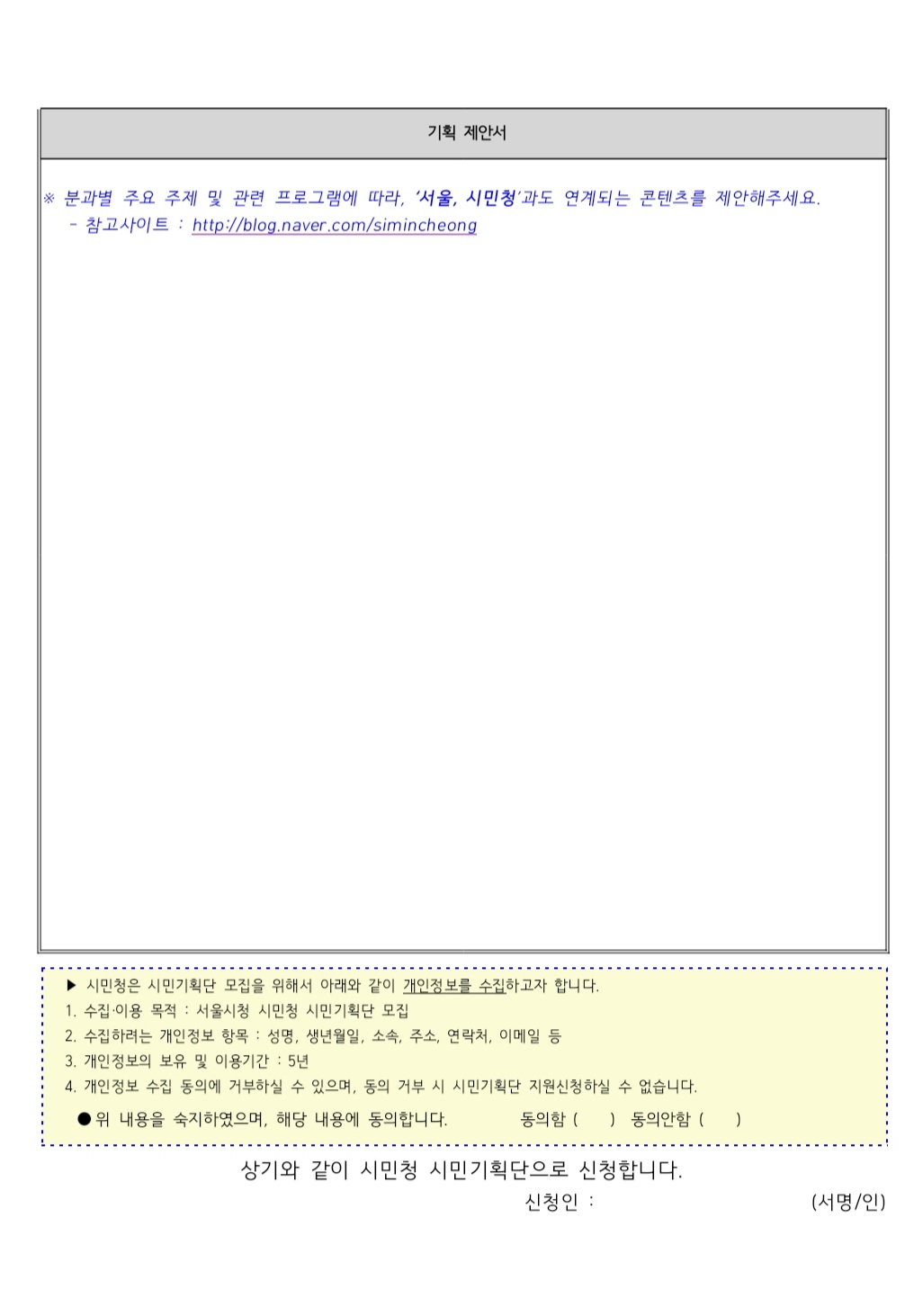 접수방법 : 지원서(기획안 포함), 증빙자료 등 이메일 접수(simin@sfac.or.kr)