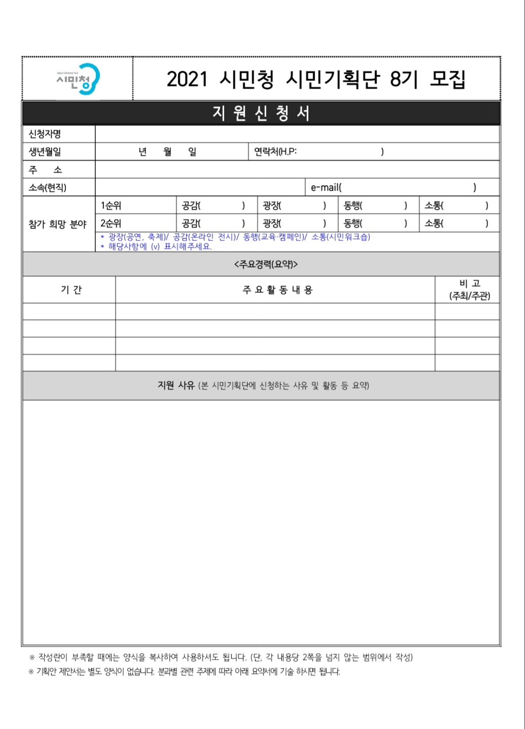# 2021년 시민청 시민기획단 8기 모집 안내