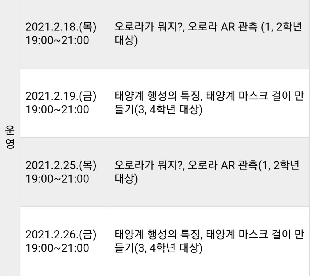 프로그램명 : 2021 가족천문교실(겨울방학)'