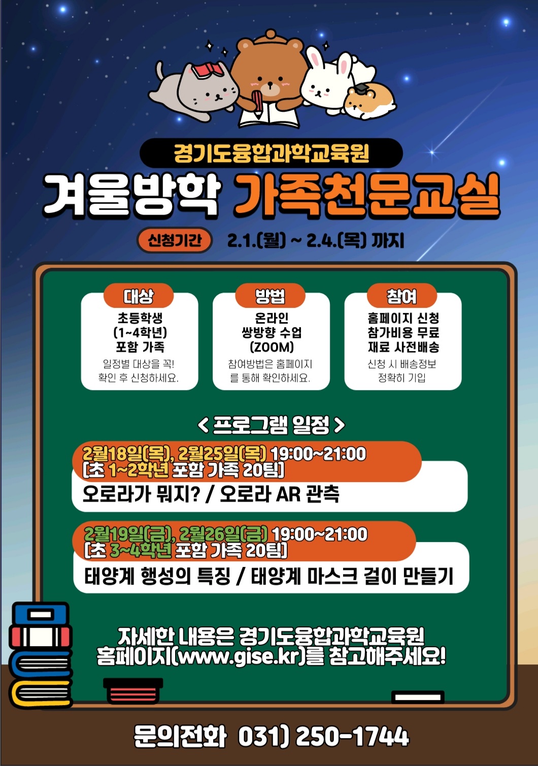 기타 문의 : 031)250-1744 (융합과학교육부 과학진 흥팀 가족천문교실 담당자)