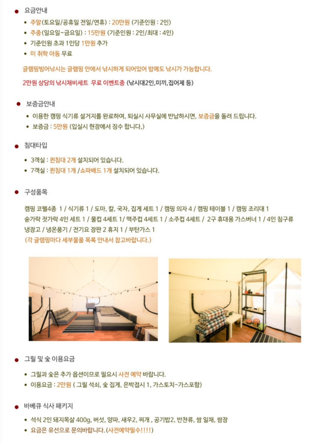 글램핑 빙어낚시도 있으니 필요하신분들은 문의해보셔도 좋을 것 같아요.