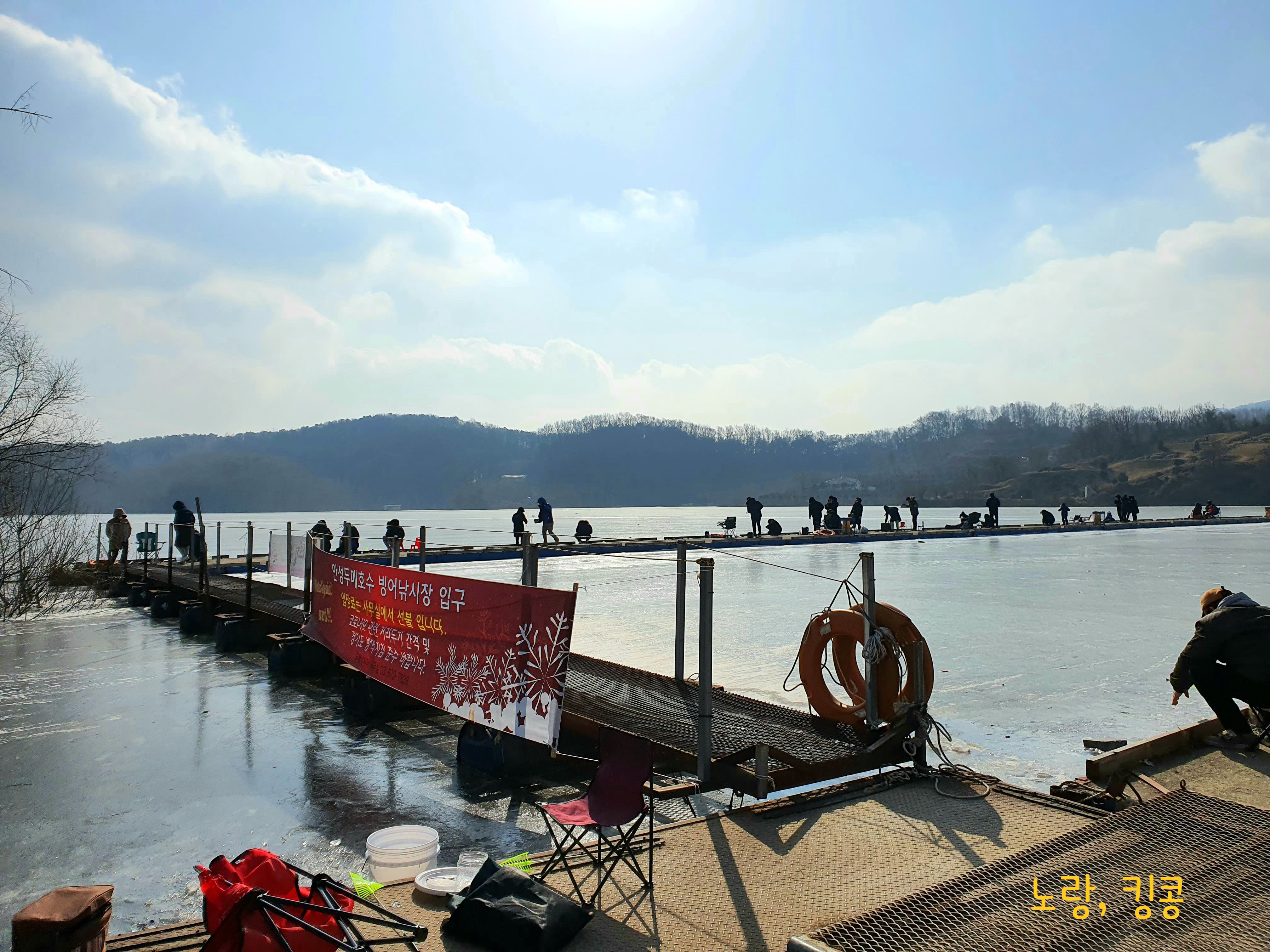 빙어낚시는 낚시터에서 운영하는 시설물 100미터짜리 부교 2동에서 빙어낚시가 진행됩니다.
