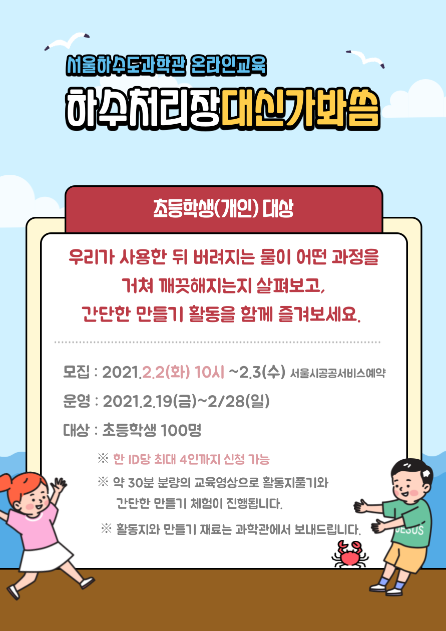 [개인] 서울하수도과학관 온라인 교육 <하수처리장 대신가봐씀(SSSM)>(교구 신청)