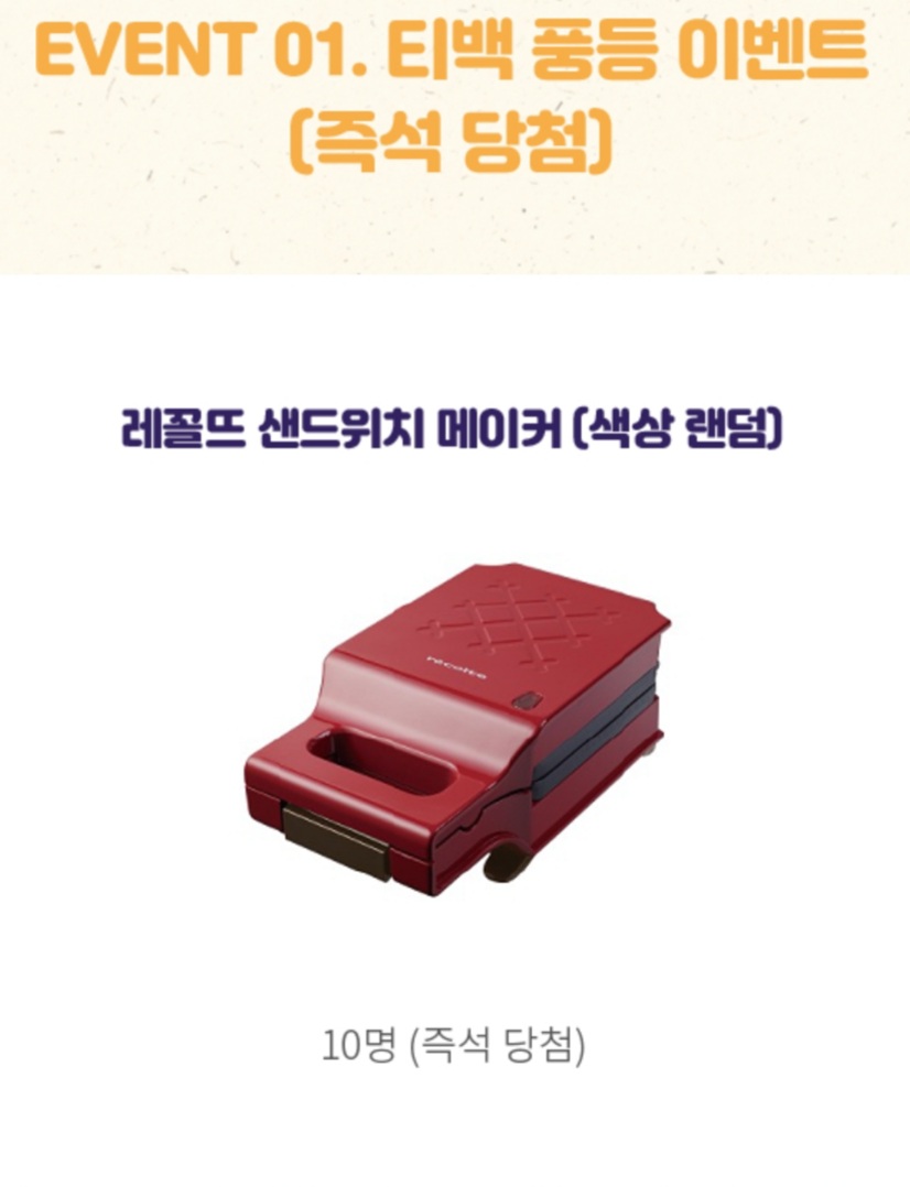 레꼴뜨 샌드위치 메이커, 동서티백, 오레오 교환권 등의푸짐한 즉석 당첨의 기회까지 확인해보세요.