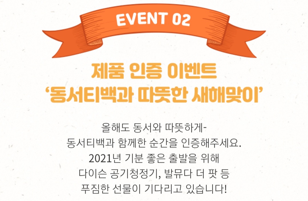 2021년 기분 좋은 출발을 위해 다이슨 공기청정기, 발뮤다 더 팟 등 푸짐한 선물이 기다리고 있습니다!