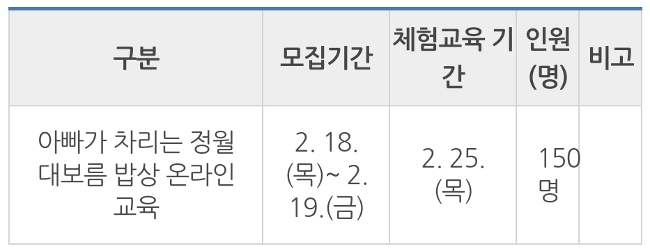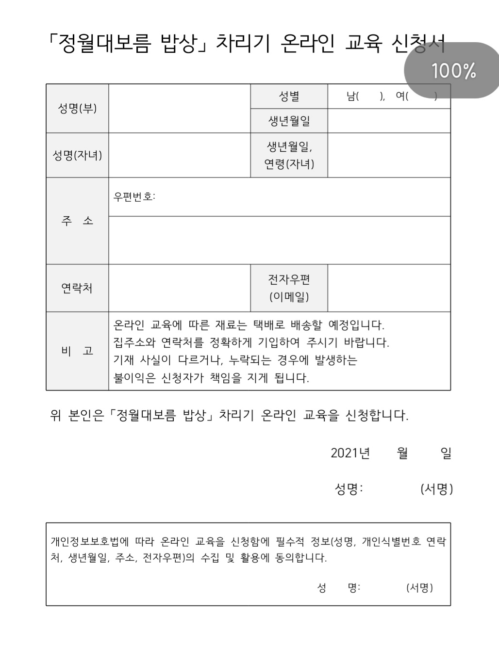 # 「정월대보름 밥상」 차리기 온라인 교육 교육생 모집