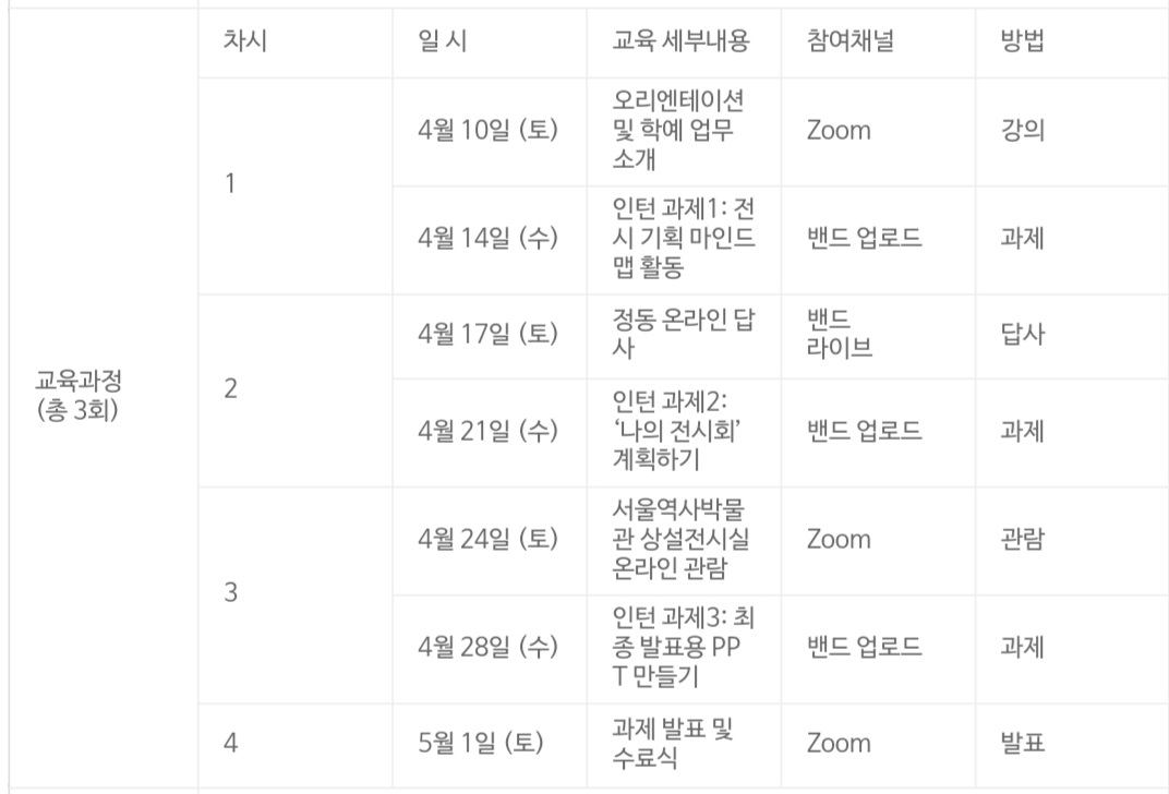 교육장소 : 박물관 1학습실(온라인 수업), 정동(온라인 답사), 상설전시실(온·오프라인 답사)
