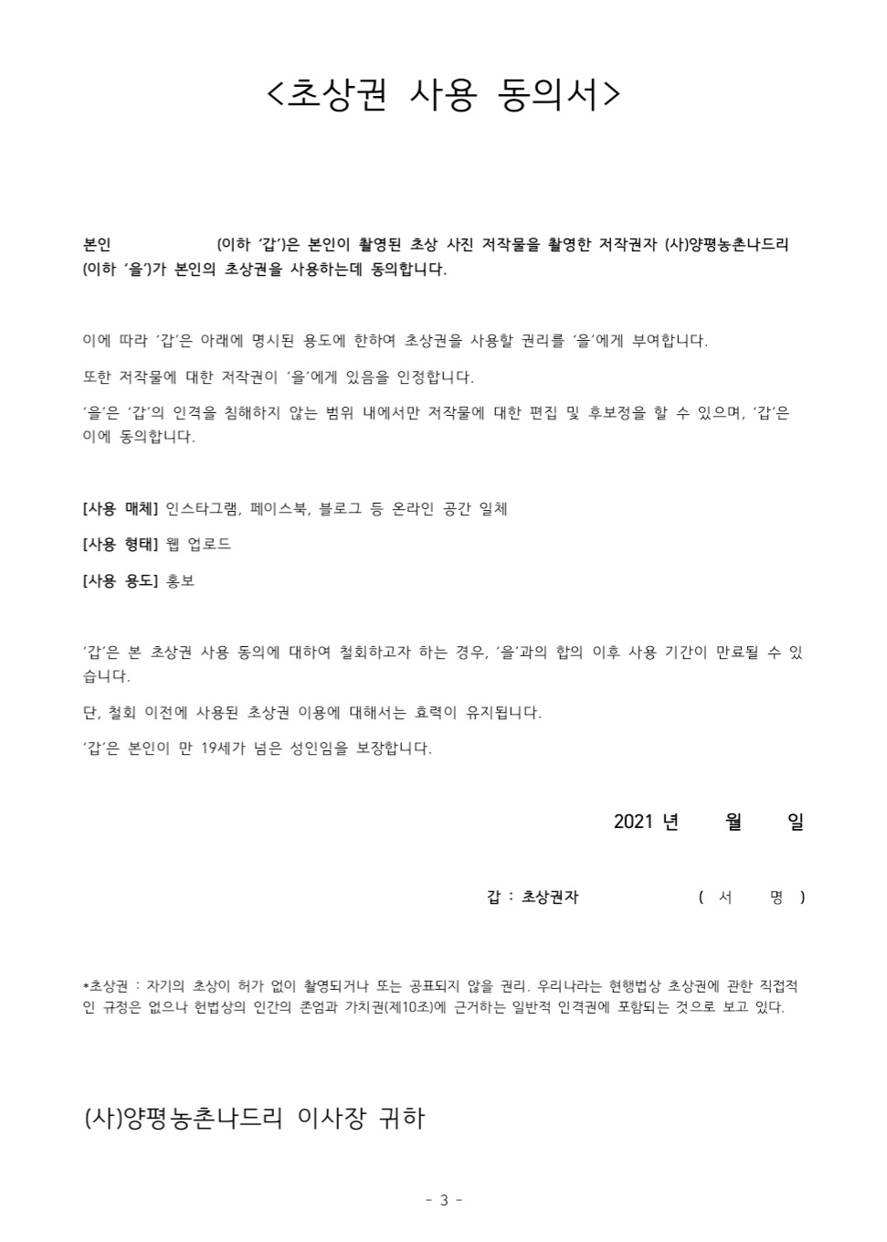 · 게시글 작성 시 “사) 양평농촌나드리로부터 지원받아 작성함”을 나타내는 문구 표기
