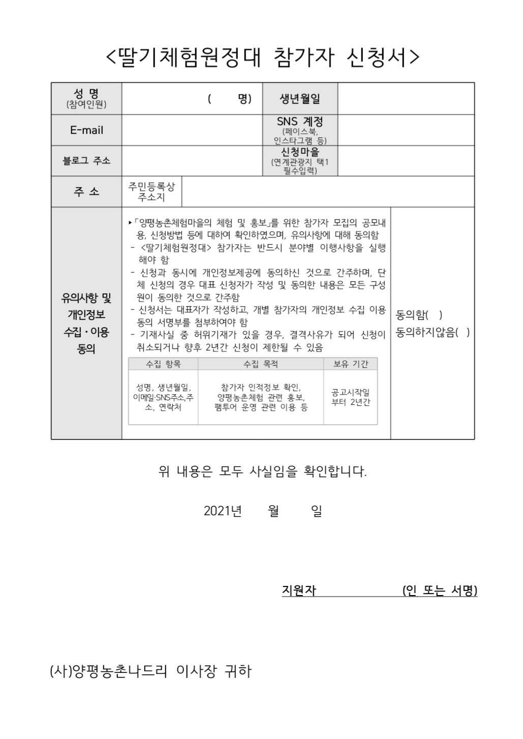 2021 양평농촌나드리< 딸기체험원정대 참가자 모집 공고 >안녕하세요^^양평농촌나드리입니다.202...
