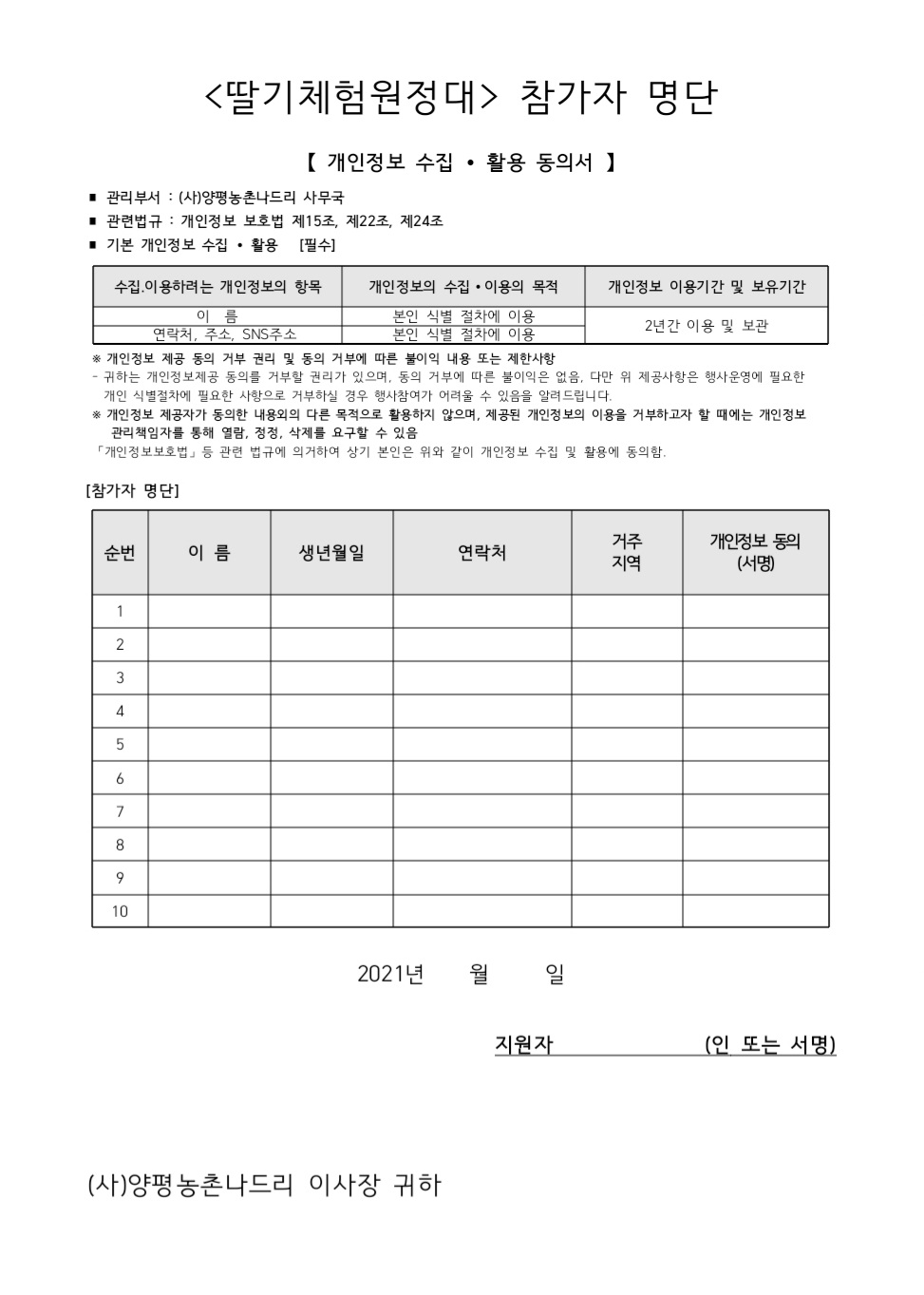 <2021 양평농촌나드리 딸기체험원정대 참가자 모집안내>_1주차