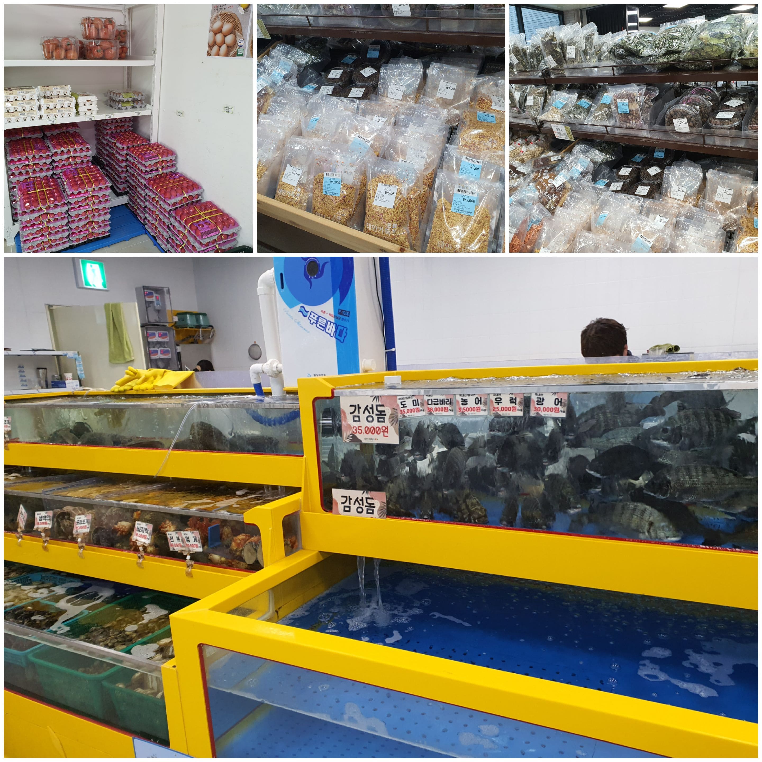 지역상품들부터 갯벌체험용품, 마트용품, 회, 고추씨, 말린 엉겅퀴, 구지뽕, 어성초, 옥수수수염.. ㅎㅎㅎ