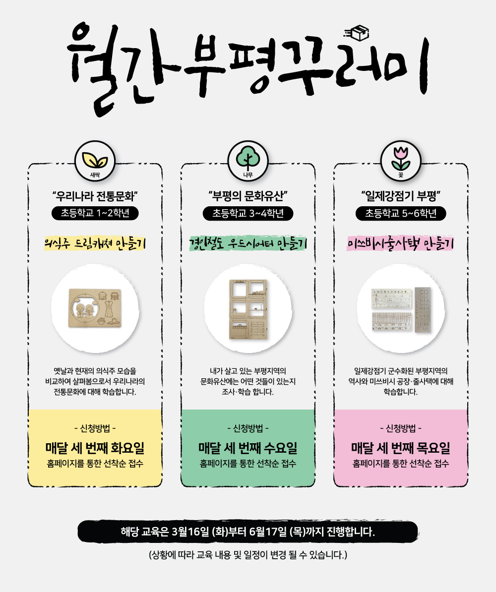 부평역사박물관에서는 2021년 상반기 어린이교육프로그램 '월간부평꾸러미'를 운영합니다.
