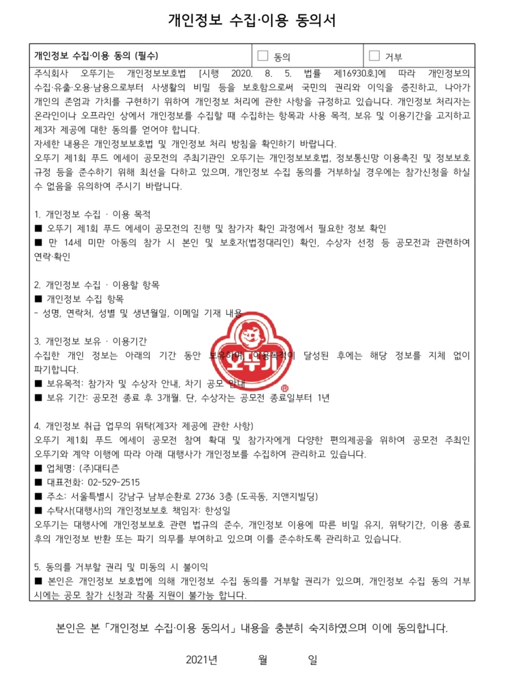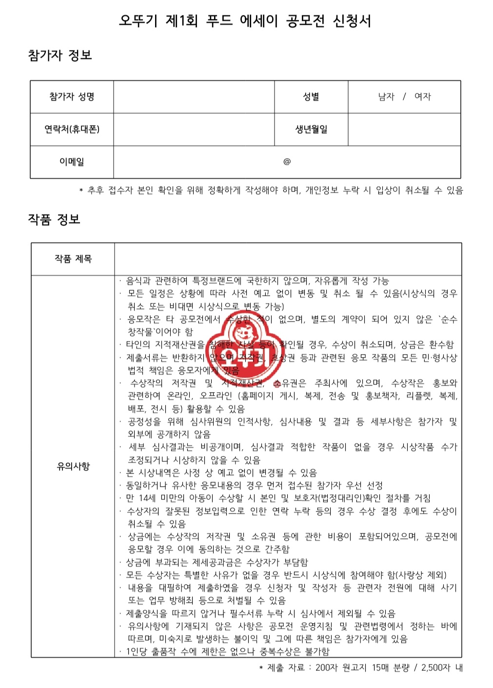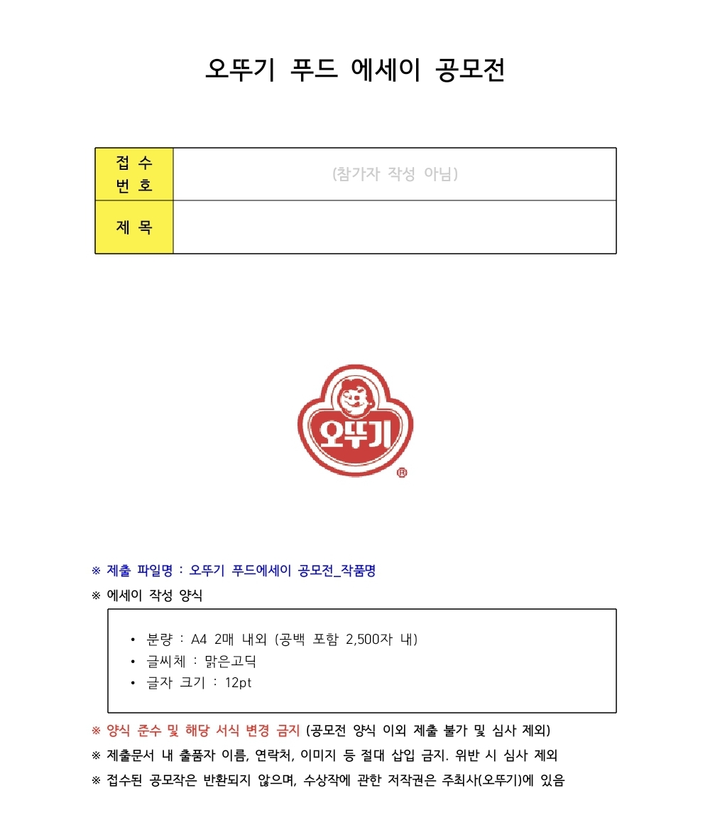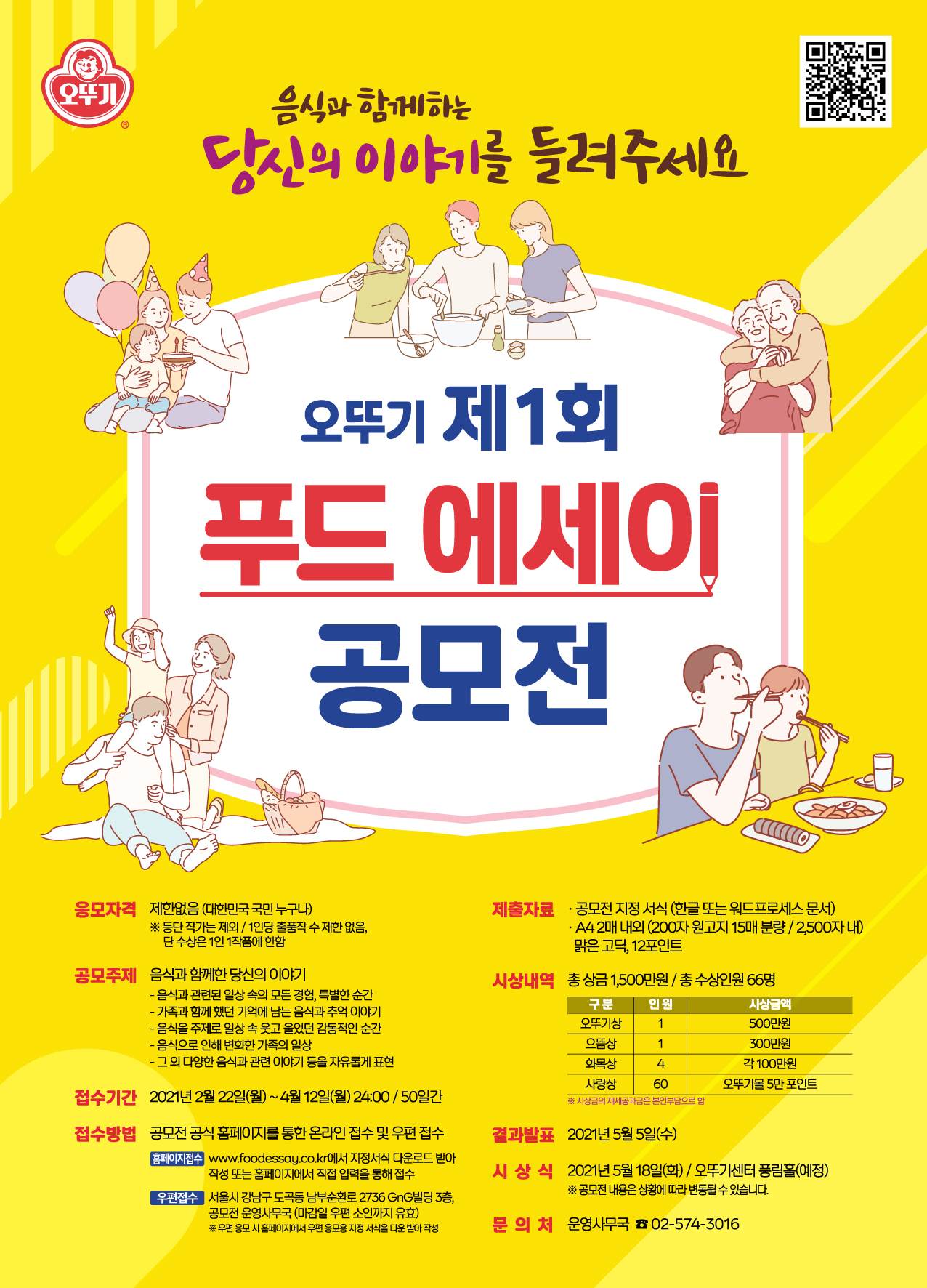 음식과 함께하는 당신의 이야기를 들려주세요. 오뚜기 제1회 푸드 에세이 공모전