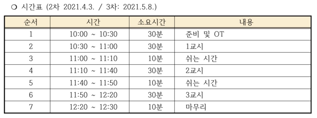 2021.4.3.(토) 오전 10시 ~ 오후 12시 30분 (시간 변동 가능) (2차)