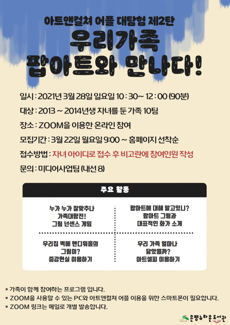 *ZOOM을 사용할 수 있는 PC와 아트앤컬쳐 어플 이용을 위한 스마트폰이 필요합니다.